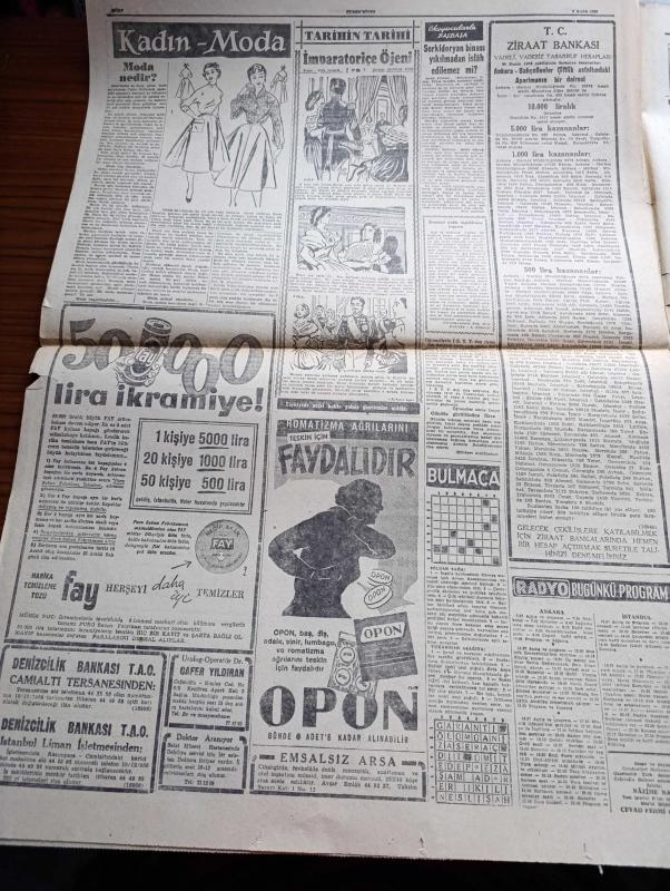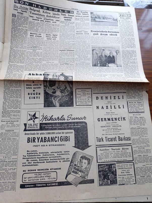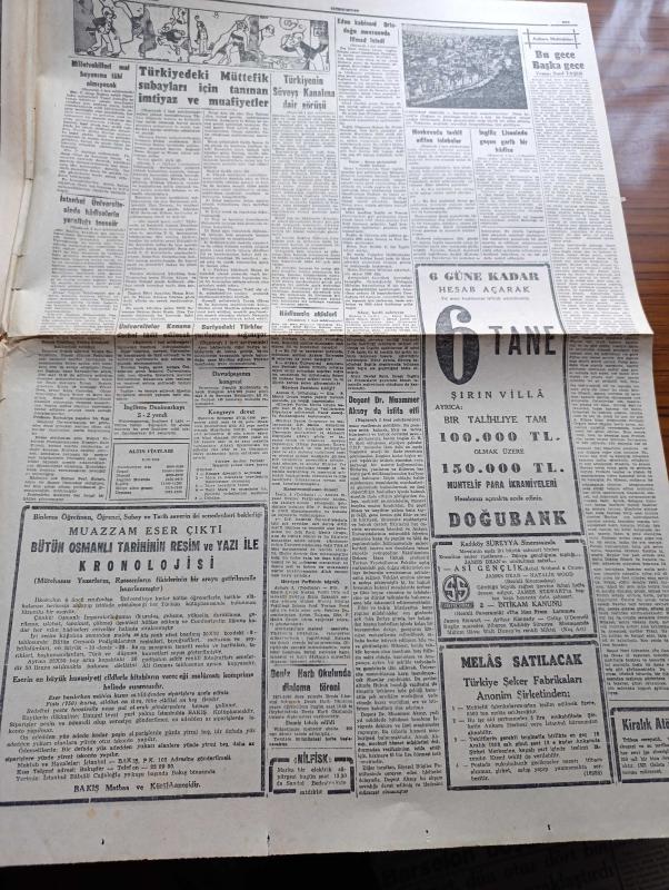 Cumhuriyet Gazetesi - 6 Aralık 1956 - Suriye'deki Türkler Yurdumuza Sığınıyor - Bugüne Kadar Yalnız Mardine Kaçanların Sayısı 1500 ü Aştı - Türkiye Suriye Hududunu Gösterir Harita - Amerika Bağdat Paktına Yeniden Teminat Verdi - Türkiye'nin Süveyş Kanalına Dair Görüşü - Üniversiteler Kanunu Derhâl Tadil Edilecek - Doçent Doktor Muammer Aksoy Da İstifa Etti - Komünistlerin Duruşması Gizli Devam Edecek - Türkiye İş Bankası - Sarayburnu Florya Sahil Yolu - Aşktan Da Üstün Yazan Elizabeth Gaskell Yazı Dizisi - Koruma Melekleri Yazan Burhan Felek Köşe Yazısı - Sevim Tarı - Şefik Hüsnü - Vehbi Koç Amerika'da Fotoğrafı - Tarihin Tarihi İmparatoriçe Öjeni Yazan Alain Decause - Kadın Moda Köşesi - Serkldoryan Binası Yıkılmadan Islah Edilemez Mi - Final Gününe 4 Güreşçi İle Girdik - Dursun Ali Erbaş - Müzahir Sille Mithat Bayrak - İstanbulspor Emniyeti Yenemedi Fotoğrafı adlı eser, Kitap > Süreli Yayınlar > Gazeteler > Türkiye > Genel > Günlük kategorisinde İkinci El olarak satıştadır.