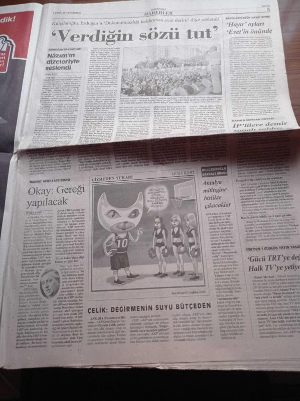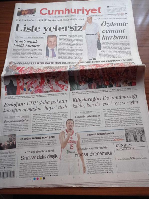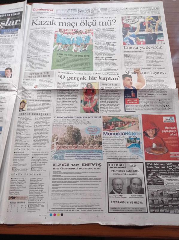 Cumhuriyet Gazetesi - 6 Eylül 2010 - Serdar Özkan Arda Turan Tam Bir Kaptan - Minderde Madalya Avı - Rıza Kayaalp - Ankara Emniyet Müdürü Özdemir Cemaat Kurbanı - Hanefi Avci- Irak Devlet Başkanı Şirvan El Vaili - Kemal Kılıçdaroğlu Dokunulmazlığı Kaldır Ben De Evet Oyu Vereyim - Devlet Bahçeli Balkanlarda adlı eser Türkçe dilindedir.