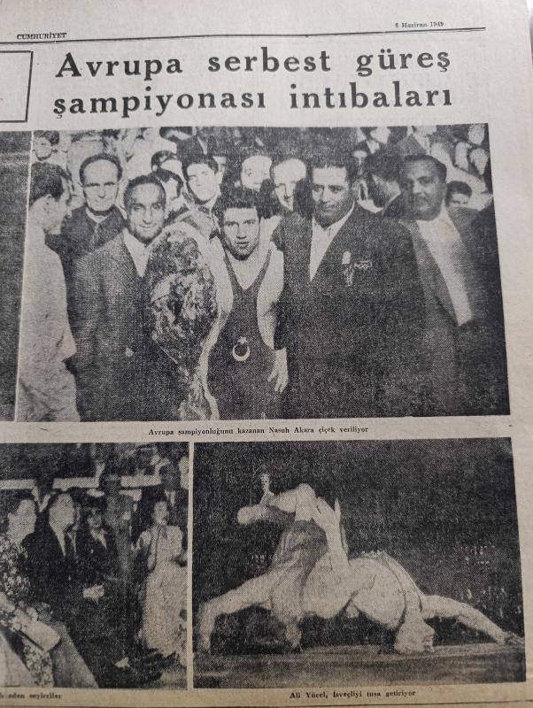 Cumhuriyet Gazetesi - 6 Haziran 1949 - Celal Bayar'ın Dün Ankara'da yaptığı konuşma - Marshall planının ikinci yıldönümü - serbest güreşte Avrupa şampiyonluğunu kazandık - 73 kiloda Avrupa birincisi olan Celal Atik Şeref kürsüsünde fotoğraf - Güreş Şampiyonası neticeleri - Vali Doktor Lütfi Kırdar 57 kilo şampiyonu Nasuh Akar'a mükafatını veriyor fotoğraf - Beşiktaş Rangers'ı dün 4-0 yendi fotoğraf - Rusya'da ölen kuryemiz Fuat Güzaltan - güreşleri Bütün Türkiye'ye anlatan Eşref Şefik'in intibaları - Türkiye Futbol Şampiyonası - Viz Zan De Rujları - Avrupa serbest güreş şampiyonası intibaları fotoğrafları - maçları heyecanla takip eden seyirciler fotoğraf - Ali Yücel isveçliyi tuşa getiriyor fotoğraf - bugünkü radyo programı - bulmaca - Gillette Traş Bıçakları - Nivea Krem - Ankara'daki Türkçe futbol şampiyonasında Ankaragücü birinci Galatasaray ikinci oldu - Osmanlı Bankası - Suriye'de seçim - bu kapıyı açmayınız yazan Anthony Gilbert Yazı Dizisi - Fransız Dışişleri Bakanı Schuman, Yunus Nadi tarafından kaleme alınmıştır. Cumhuriyet Gazetesi - 6 Haziran 1949 - Celal Bayar'ın Dün Ankara'da yaptığı konuşma - Marshall planının ikinci yıldönümü - serbest güreşte Avrupa şampiyonluğunu kazandık - 73 kiloda Avrupa birincisi olan Celal Atik Şeref kürsüsünde fotoğraf - Güreş Şampiyonası neticeleri - Vali Doktor Lütfi Kırdar 57 kilo şampiyonu Nasuh Akar'a mükafatını veriyor fotoğraf - Beşiktaş Rangers'ı dün 4-0 yendi fotoğraf - Rusya'da ölen kuryemiz Fuat Güzaltan - güreşleri Bütün Türkiye'ye anlatan Eşref Şefik'in intibaları - Türkiye Futbol Şampiyonası - Viz Zan De Rujları - Avrupa serbest güreş şampiyonası intibaları fotoğrafları - maçları heyecanla takip eden seyirciler fotoğraf - Ali Yücel isveçliyi tuşa getiriyor fotoğraf - bugünkü radyo programı - bulmaca - Gillette Traş Bıçakları - Nivea Krem - Ankara'daki Türkçe futbol şampiyonasında Ankaragücü birinci Galatasaray ikinci oldu - Osmanlı Bankası - Suriye'de seçim - bu kapıyı açmayınız yazan Anthony Gilbert Yazı Dizisi - Fransız Dışişleri Bakanı Schuman adlı eser Türkçe dilindedir.