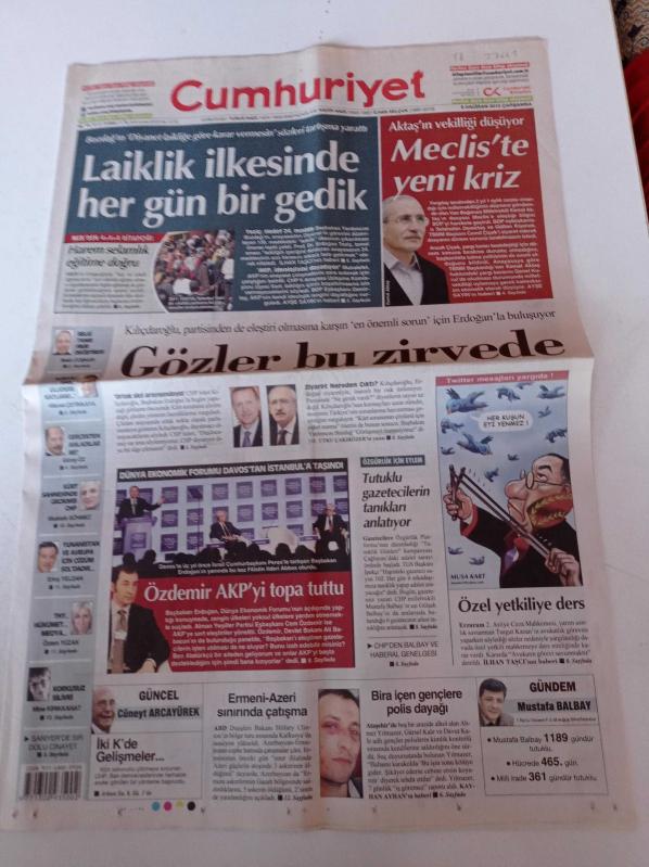 Cumhuriyet Gazetesi - 6 Haziran 2012 - Çevre Ve Şehircilik Bakanı Erdoğan Bayraktar 3. Köprünün Zararları Var Ama Elzem - Kaz Dağları Mutlaka Korunmalı - Alman Yeşiller Partisi Eşbaşkanı Cem Özdemir - Mecliste Yeni Kriz - Laiklik İlkesinde He Gün Bir Gedik adlı eser Türkçe dilindedir.