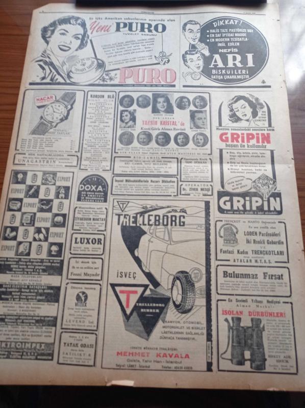 Cumhuriyet Gazetesi - 7 Aralık 1952 - Hükümet İrticaa Karşı Sesini Yükseltti - Başbakan Adnan Menderes Memlekette Vicdan Hürriyetine Tecavüz Kimsenin Haddi Değildir - Esrar Ticareti Yapan Bir Şebeke - Hitler'in Gözde Arkadaşı Hess'in Karısı Kitap Yazdı - Beşiktaş Etnikos'u 2 0 Yendi - 1953 Yılı Bütçe Kanunu - Ankara'da Bir Kanser Müessesi Kuruluyor - Cumhurbaşkanı Celal Bayar'ın Rami Göçmenevleri Ziyareti - General Eisenhower Kore Siyasetini Hazırlıyor - Kore'den Gelecek Yedek Subaylarımız - Eski Başbakanlardan Şükrü Saraçoğlu'nun Evi Soyuldu - Ericsson Elektrik Sayaçları - Radyolin Diş Macunu - Suçlu Benim Filmi Pek Yakında - Sadri Alışık - Feridun Çölgeçen - Galatasaray İzmir'de Galip - Şişli Tünel Tramvayları Yarın Kaldırılıyor - Arı Bisküvileri - Puro Tuvalet Sabunları - Hamiyet Yüceses Taksim Kristal'de - Nacar Saatleri - İsolan Dürbünleri adlı eser, Kitap > Süreli Yayınlar > Gazeteler > Türkiye > Genel > Günlük kategorisinde İkinci El olarak satıştadır.