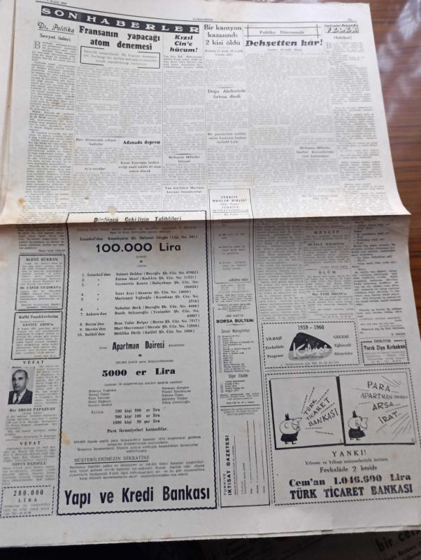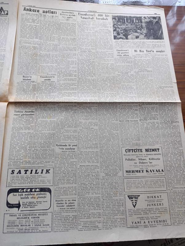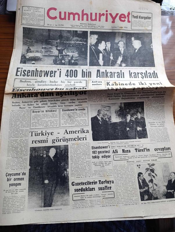 Cumhuriyet Gazetesi - 7 Aralık 1959 - Eisenhower'i 400 Bin Ankaralı Karşıladı Fotoğraflar - Celal Bayar'ın Eisenhower'i Karşılarken Yaptığı Konuşması - Eisenhower'in Konuşması - Eisenhower Bu Sabah Ankara'dan Ayrılıyor - Türkiye Amerika Resmi Görüşmeleri - Eisenhower'i 182 Gazeteci Takip Ediyor - Eski Bakanlar Diyorlar Ki Ali Rıza Türel'in Cevapları Röportajı Yapan Feyyaz Tokar Yazı Dizisi - Gazetecilerin Fatin Rüştü Zorluya Sordukları Sualler - Akıp Giden Zamanlar Yazan Fakir Baykurt - Fransa'nın Yapacağı Atom Denemesi - Hakikat Yazan Burhan Felek - Françoise Sagan'ın Romanından Bir Film - Alaca Çorap Yazan Nihal Karamağaralı Yazı Dizisi - Amatör Milli Takım Irak'ı 7 1 Yendi - Feriköy Altay'ı 2 0 Yendi - Basketbol Maçlarında Vefa Darüşşafaka Galip - Milli Ligde Puan Durumu adlı eser, Kitap > Süreli Yayınlar > Gazeteler > Türkiye > Genel > Günlük kategorisinde İkinci El olarak satıştadır.