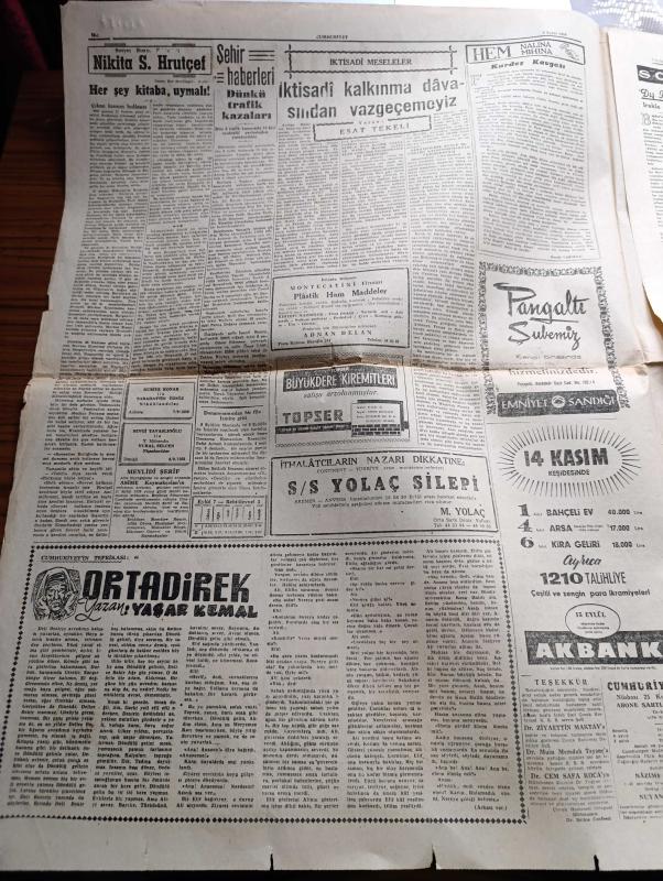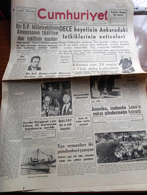 Cumhuriyet Gazetesi - 7 Eylül 1959 - Ankara Radyosu Müdürlüğüne Bir Cevap Yazan Nadir Nadi Köşe Yazısı - Demokrat Parti Milletvekili Fahri Ağaoğlu'nun Anayasanın Tadiline Dair Teklifinin Esasları - Bir Demokrat Parti Kongresinde Hadi Hüsman Tevfik İleri'den Bir Talepte Bulundu - OECE Heyetinin Ankara'daki Tetkiklerinin Neticeleri - Kıbrıs'ta Son 24 Saatte 2 Türk Daha Katledildi - Fatin Rüştü Zorlu Paris'ten Döndü - Tarihi Ertuğrul Yatı Kilosu 13 Kuruştan Hurdacıya Satıldı - Galatasaray Umumi Kaptanı Kadri Dağ'dan Futbol Seyircilerine Ders - Ortadirek Yazan Yaşar Kemal Yazı Dizisi - Kardeş Kavgası Yazan Hamdi Varoğlu - Sovyet Şefi Hrutçef'in Amerika Programı Açıklandı - Fransız Edebiyat Mükafatını Kazanan Şair Saint John Perse - Resimli Roman Azrail Der Ki Yazan Suat Taşer Resimleyen Hüseyin Mumcu - Koruyucu Melekler Çizgi Roman - Bay Oscar Karikatür - Profesör Nimbüs'ün Maceraları Çizgi Roman - Galatasaray Feriköy'ü Dünkü Maçta 3 0 Yendi - KYK İstanbul Yelken Şampiyonluğunu Kazandı, Yunus Nadi tarafından kaleme alınmıştır. Cumhuriyet Gazetesi - 7 Eylül 1959 - Ankara Radyosu Müdürlüğüne Bir Cevap Yazan Nadir Nadi Köşe Yazısı - Demokrat Parti Milletvekili Fahri Ağaoğlu'nun Anayasanın Tadiline Dair Teklifinin Esasları - Bir Demokrat Parti Kongresinde Hadi Hüsman Tevfik İleri'den Bir Talepte Bulundu - OECE Heyetinin Ankara'daki Tetkiklerinin Neticeleri - Kıbrıs'ta Son 24 Saatte 2 Türk Daha Katledildi - Fatin Rüştü Zorlu Paris'ten Döndü - Tarihi Ertuğrul Yatı Kilosu 13 Kuruştan Hurdacıya Satıldı - Galatasaray Umumi Kaptanı Kadri Dağ'dan Futbol Seyircilerine Ders - Ortadirek Yazan Yaşar Kemal Yazı Dizisi - Kardeş Kavgası Yazan Hamdi Varoğlu - Sovyet Şefi Hrutçef'in Amerika Programı Açıklandı - Fransız Edebiyat Mükafatını Kazanan Şair Saint John Perse - Resimli Roman Azrail Der Ki Yazan Suat Taşer Resimleyen Hüseyin Mumcu - Koruyucu Melekler Çizgi Roman - Bay Oscar Karikatür - Profesör Nimbüs'ün Maceraları Çizgi Roman - Galatasaray Feriköy'ü Dünkü Maçta 3 0 Yendi - KYK İstanbul Yelken Şampiyonluğunu Kazandı adlı eser Türkçe dilindedir.