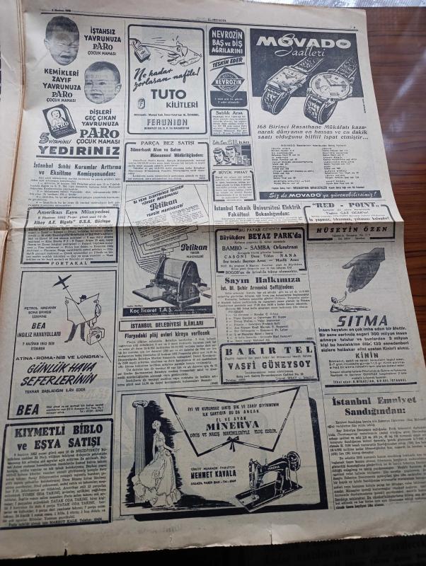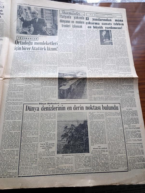 Cumhuriyet Gazetesi - 7 Haziran 1952 - CHP'nin Tasfiyesine Kadar Gidebilecek Bir Kanun Teklifi - Başbakan Adnan Menderes'in Patrik Athenagoras'ı Ziyareti - Albay Nuri Pamir Kore'de Şehit Oldu Fotoğraf - Yunan Hükümdarları Yarın 17 de Geliyorlar - Kuzey Atlantik Paktı Kuvvetleri Başkomutanı General Ridgway'in Türkiye'yi Ziyareti - Mareşal Papagos'a Trakyanın Müdafaası Kabil Olmayacak - Türk Fransız Kültür Anlaşması - İspanya Futbol Milli Takımı Geldi - Gelin Aya Gidelim Yazan Tevfik Sadullah - Dün Geceki Güzellik Müsabakası Fotoğraf - Ruh Gurbetinde Yazan Kerime Nadir Yazı Dizisi - Konya'da Suni Yağmur Denemeleri - Hindistan'da Hindu Müslüman Kavgası - Gül Kupası Atletizm Müsabakaları - El Yazılarından Mana Çıkarma Sanatı Tıbbın Büyük Yardımcısı - Süreyya Plaj Gazinosu Maltepe - Movado Saatleri - Minerva Dikiş Makineleri - Perihan Altındağ Sözeri Siz Bana Gelmezseniz Siemens Beni Size Getirir Diyor - Volvo Diesel Kamyonları - Oliver Yazı Makineleri - Alman Gobi Bisiklet - Philco adlı eser, Kitap > Süreli Yayınlar > Gazeteler > Türkiye > Genel > Günlük kategorisinde İkinci El olarak satıştadır.