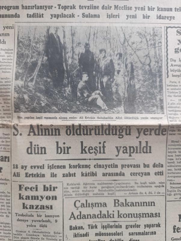 Cumhuriyet Gazetesi - 7 Kasım 1949 - çok dikkat edilecek bir nokta Cumhuriyet Başmakale - Sabahattin Ali'nin öldürüldüğü yerde Dün bir keşif yapıldı - Ali Ertekin Sabahattin Ali'yi öldürdüğü yerde oturuyor fotoğraf - kremlin'in tehditlerle dolu sulh taarruzu - Sovyet politbürosundan Malenkov Molotov Voroşilov Ve Stalin bir merasimi seyrederken fotoğraf - Demokrat Parti başkanı Celal Bayar hedefimiz yakındır diyor - Çalışma Bakanı Reşad Şemsettin Sirer'in Adana'daki konuşması - Fenerbahçe 1 Galatasaray 0 fotoğraf - askerlik müddeti azaltılmayacak - Moskova'da 3 yıl yazan Bedell Smith Yazı Dizisi - Farabinin ölümünün bininci yıldönümü yazan doktor Kemal Saraçoğlu - Chopin konseri Dün verildi - Turgut Reis yazan Halikarnas Balıkçısı Yazı Dizisi - Kara şeytan filmi Atlas sinemasında - yeni ses tiyatrosunda Deli Gönül - serbest güreş birinciliklerini Kasımpaşa kazandı - Perihan Altındağ Sözeri Ve İsmail Dümbüllü bu akşam Kadıköy Süreyya sinemasında - Dram kısmında Faust oyunu - Philips, Yunus Nadi tarafından kaleme alınmıştır. Cumhuriyet Gazetesi - 7 Kasım 1949 - çok dikkat edilecek bir nokta Cumhuriyet Başmakale - Sabahattin Ali'nin öldürüldüğü yerde Dün bir keşif yapıldı - Ali Ertekin Sabahattin Ali'yi öldürdüğü yerde oturuyor fotoğraf - kremlin'in tehditlerle dolu sulh taarruzu - Sovyet politbürosundan Malenkov Molotov Voroşilov Ve Stalin bir merasimi seyrederken fotoğraf - Demokrat Parti başkanı Celal Bayar hedefimiz yakındır diyor - Çalışma Bakanı Reşad Şemsettin Sirer'in Adana'daki konuşması - Fenerbahçe 1 Galatasaray 0 fotoğraf - askerlik müddeti azaltılmayacak - Moskova'da 3 yıl yazan Bedell Smith Yazı Dizisi - Farabinin ölümünün bininci yıldönümü yazan doktor Kemal Saraçoğlu - Chopin konseri Dün verildi - Turgut Reis yazan Halikarnas Balıkçısı Yazı Dizisi - Kara şeytan filmi Atlas sinemasında - yeni ses tiyatrosunda Deli Gönül - serbest güreş birinciliklerini Kasımpaşa kazandı - Perihan Altındağ Sözeri Ve İsmail Dümbüllü bu akşam Kadıköy Süreyya sinemasında - Dram kısmında Faust oyunu - Philips adlı eser Türkçe dilindedir.