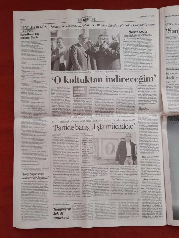 Kitap 2010 yılında yayınlanmıştır. 22 sayfadır. Cumhuriyet Gazetesi 7 Kasım 2010 Avrupa İzleniyor,Onu İndireceğim,Kadınlar AKP'ye Karşı Yürüyor,Partide Barış Dışta Mücadele,Balbay'ın İsteği Kabul Edildi,Bahçeli Hezeyan İçinde,Fenerbahçe Evinde Coştu,Koridorda Kırmızı Kart,Antalya Başladı Bursa Bitirdi,Sultanlar Fırtına Gibi,Hagi 3 Puan İstedi adlı eser Türkçe dilindedir.