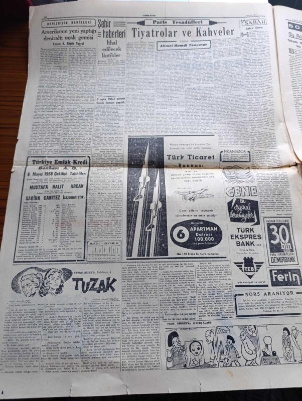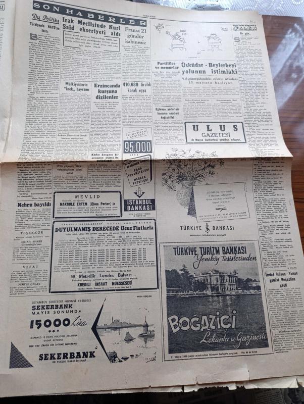 Cumhuriyet Gazetesi - 7 Mayıs 1958 - Yurda Altın İthali Serbest Bırakılıyor - Türkiye Atlantik Paktı Azalarını İkaz Ediyor - Londra'da Kıbrıs Ananesine Uygun Nikah Fotoğrafı - Üsküdar Vapuru Geldi Fotoğraf - Gazeteci Nihat Subaşı Daha Dün Cezaevine Girdi - Kıbrıs Valisi Foot Dün Londra'ya Gitti - Hıdırellez Fotoğrafı - Topkapıda Gaz Kuyruğu Fotoğraf - Tiyatrolar Ve Kahveler Yazan Ahmet Hamdi Tanpınar - Hint Filozofu Tagor İçin Anma Toplantısı - Türkiye'nin NATO'ya İkazı Yazan Ömer Sami Coşar - Üsküdar Beylerbeyi Yolunun İstimlaki - Eğlence Yerleri 24 e Kadar Açık Kalabilecek - 1958 Cannes Film Festivali Yazan Aydemir Balkan - Sanat Âleminde Georges Tzipine ve Ayşegül Sarıca - Hollanda'da Kıymetli Bir Galibiyet Alan Milli Takım Dönüyor Fotoğrafı - Juventus İtalya Lig Şampiyonu Oldu - Bangu Takımı Galatasaray İle Oynayacak - Kaderin Cilvesi Filmi Ar Sinemasında, Yunus Nadi tarafından kaleme alınmıştır. Cumhuriyet Gazetesi - 7 Mayıs 1958 - Yurda Altın İthali Serbest Bırakılıyor - Türkiye Atlantik Paktı Azalarını İkaz Ediyor - Londra'da Kıbrıs Ananesine Uygun Nikah Fotoğrafı - Üsküdar Vapuru Geldi Fotoğraf - Gazeteci Nihat Subaşı Daha Dün Cezaevine Girdi - Kıbrıs Valisi Foot Dün Londra'ya Gitti - Hıdırellez Fotoğrafı - Topkapıda Gaz Kuyruğu Fotoğraf - Tiyatrolar Ve Kahveler Yazan Ahmet Hamdi Tanpınar - Hint Filozofu Tagor İçin Anma Toplantısı - Türkiye'nin NATO'ya İkazı Yazan Ömer Sami Coşar - Üsküdar Beylerbeyi Yolunun İstimlaki - Eğlence Yerleri 24 e Kadar Açık Kalabilecek - 1958 Cannes Film Festivali Yazan Aydemir Balkan - Sanat Âleminde Georges Tzipine ve Ayşegül Sarıca - Hollanda'da Kıymetli Bir Galibiyet Alan Milli Takım Dönüyor Fotoğrafı - Juventus İtalya Lig Şampiyonu Oldu - Bangu Takımı Galatasaray İle Oynayacak - Kaderin Cilvesi Filmi Ar Sinemasında adlı eser Türkçe dilindedir.