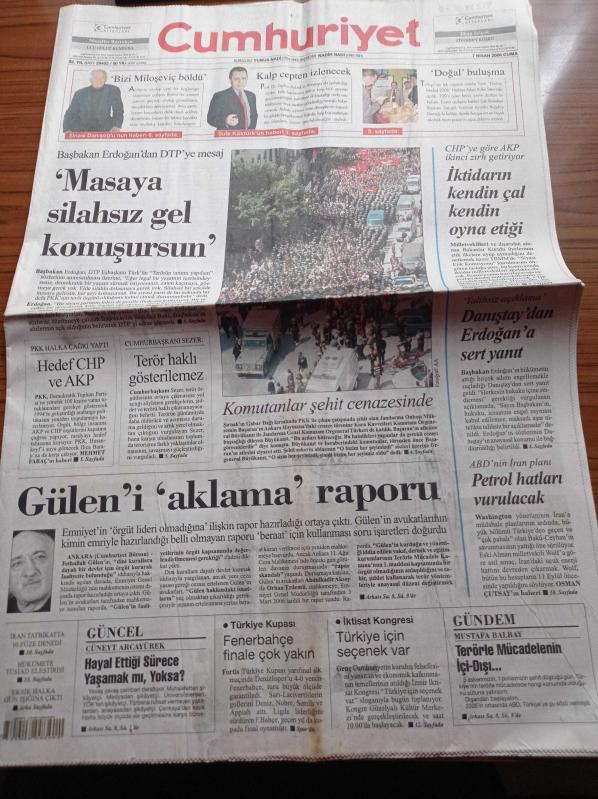 Cumhuriyet Gazetesi - 7 Nisan 2006 - Efes Pilsen'den Avrupa'ya Veda - Havuzda Söz Fenerbahçe'nin - 100. Yıla Naomi Campbell'li Kutlama - Hilatoryum'un Azı Dişi Bulundu - Başbakan Recep Tayyip Erdoğan'dan DTP'ye Masaya Silahsız Gel Konuşursun - Fethullah Gülen'i Aklama Raporu - ABD'nin İran Planı Petrol Hatları Vurulacak - Danıştay'dan Recep Tayyip Erdoğan'a Sert Yanıt adlı eser, Kitap > Süreli Yayınlar > Gazeteler kategorisinde İkinci El olarak satıştadır.