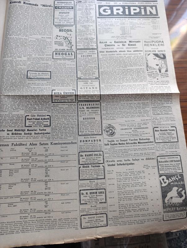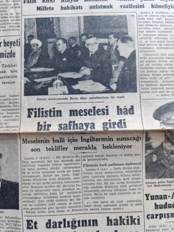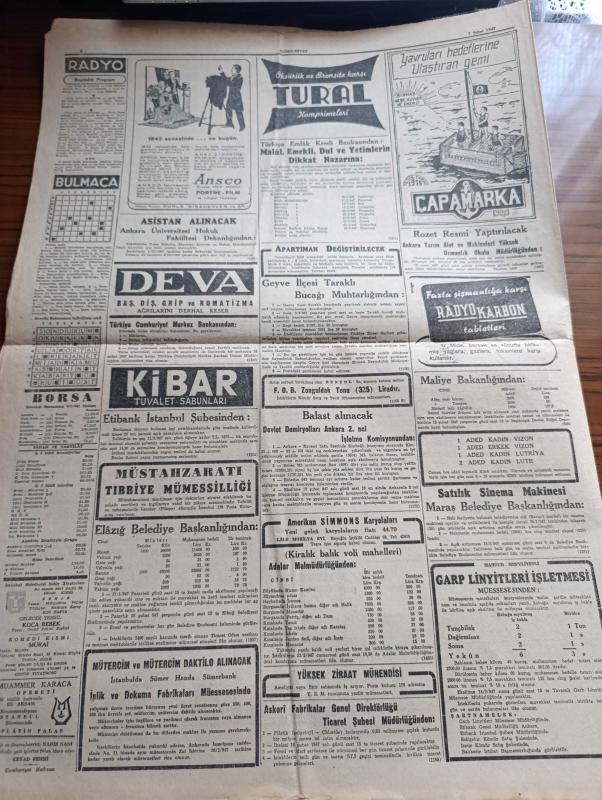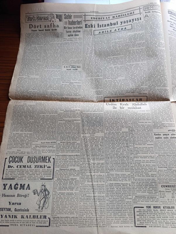 Cumhuriyet Gazetesi - 7 Şubat 1947 - Suriye'nin tuttuğu yanlış yol Cumhuriyet Başmakale - Güney sınırımızda Kürt devleti kurma hülyaları - Kürtlerin şefi ve önderi olduğu söylenen Sabri Buzan fotoğraf - meclisin kış tatili - Ulus gazetesinin verdiği hüküm - Falih Rıfkı Atay'ın makalesi millete yalan söylüyorlar - Filistin konferansı'nda Bevin diğer murahhaslarla bir arada fotoğraf - Yunan Arnavut hududunda çarpışma oldu - Ticaret Bakanı Atıf inan ve ekonomi bakanı Tahsin Bekir Balta Dün tüccarlarla görüşürlerken fotoğraf - Mareşal Fevzi Çakmak'ın beyanatı - Suat Hayri Ürgüplü davası - barış antlaşmaları pazartesi imzalanıyor - Türk güreşi Yazan İsmail Habib Sevük - eski İstanbul yaşayışı yazan Adile Ayda - Ürdün kralı Abdullah ile bir mülakat - hep istiyorlar yazan Burhan Felek - kanserle Savaş Kurumu kuruluyor - Rusya Amerika'dan ödünç aldığı 95 gemiyi iade etmiyor - eşsiz Türk filmi yanık kaval senaryo ve reji Baha Gelenbevi - Yunus Nadi mükafatı Almanya meselesi - radyo programı adlı eser, Kitap > Süreli Yayınlar > Gazeteler > Türkiye > Genel > Günlük kategorisinde İkinci El olarak satıştadır.