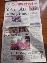 Sayfa Boyutu: 38*56cm Sayfa Sayısı: 16 Cumhuriyet Gazetesi Yıpranma, sararmalar, kupon kesiği ve yırtılmalar zamana bağlı olarak görülebilir