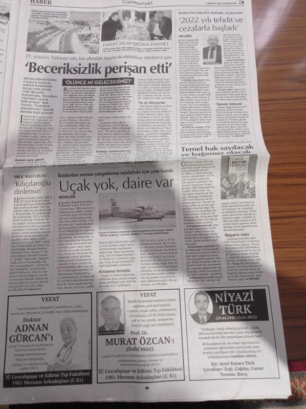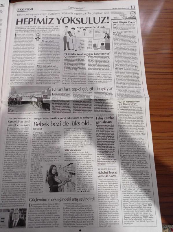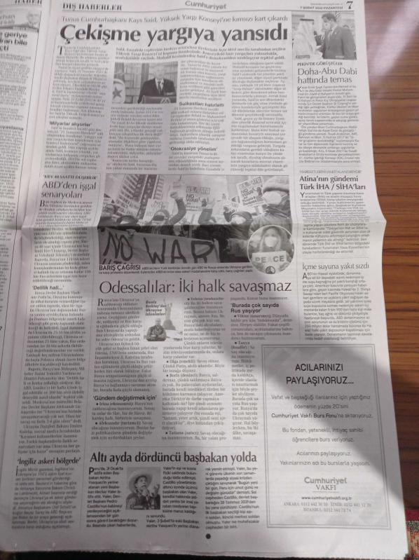 Cumhuriyet Gazetesi - 7 Şubat 2022 - Beşiktaş Galatasaray Kazanmayı Unuttular - Şule Çet Melike Şahin Adile Kılınç Veym Şevval Abanoz Cinayetlerine İntihar Süsü - Samsun'da Atatürk Anıtı Önünde Saygı Nöbetine Marşlarla Veda - Millet İttifakı Büyüyecek Mi - Ahmet Davutoğlu Eşitlik İstiyor - Naci İnci Ve Ekibi Boğaziçi'ni Gasp Etti adlı eser Türkçe dilindedir.