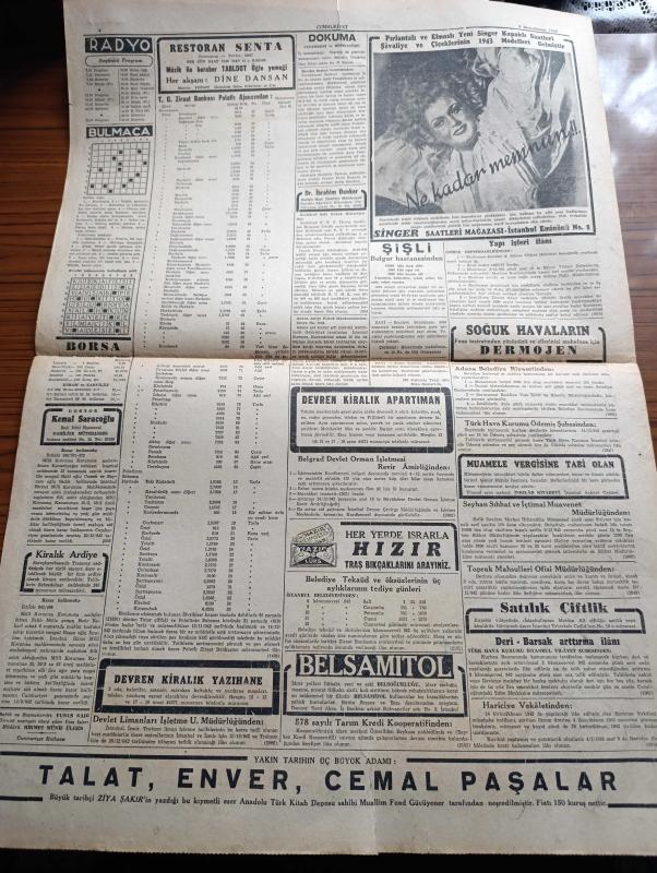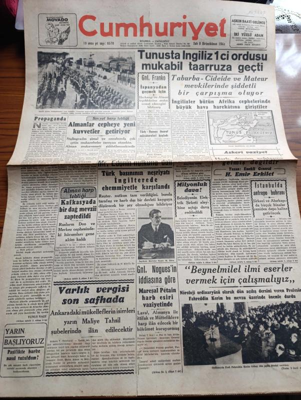 Cumhuriyet Gazetesi - 8 Birincikanun (Aralık) 1942 - Propaganda Yazan Yunus Nadi Köşe Yazısı - Şimali Afrika Hadislerinden Yeni Resimler - Tunus'ta İngiliz 1. Ordusu Mukabil Taarruza Geçti - General Franko İspanya'dan Geçmek İçin Herhangi Bir Alman Teşebbüsüne Mukavemet Edeceğini Bildirmiş - Askeri Vaziyet Yazan Emekli General H. Emir Erkilet Yazı Dizisi - Belediyenin Elektrik Şirketi Aleyhine Açtığı Dava Reddedildi - Varlık Vergisi Son Safhada - İstanbul'da Antrepo Buhranı Sirkeci Ve Ahırkapıda Birçok Binalar Yeniden Depo Haline Getirilecek - Profesör Fahreddin Kerim Gökay Dün Açılış Dersini Verirken Fotoğraf - Ankara'ya On Bin Kilo Uskumru Gönderildi - Edebiyat Ve Mantık Yazan M. Namık Çankı - Tarihi Musiki Konseri - Galatasaray Fenerbahçe Beşiktaş Dostluk Maçı Yapma Konusunda Anlaştı - Kar İzleri Örttü Yazan Henri Bordeaux Yazı Dizisi - Hava Üstünlüğü Yarışı Yazan Ömer Rıza Doğrul Köşe Yazısı - Türk Parasının Korunması Hakkında Kanun - Singer Saatleri Mağazası Eminönü - Radyo, Yunus Nadi tarafından kaleme alınmıştır. Cumhuriyet Gazetesi - 8 Birincikanun (Aralık) 1942 - Propaganda Yazan Yunus Nadi Köşe Yazısı - Şimali Afrika Hadislerinden Yeni Resimler - Tunus'ta İngiliz 1. Ordusu Mukabil Taarruza Geçti - General Franko İspanya'dan Geçmek İçin Herhangi Bir Alman Teşebbüsüne Mukavemet Edeceğini Bildirmiş - Askeri Vaziyet Yazan Emekli General H. Emir Erkilet Yazı Dizisi - Belediyenin Elektrik Şirketi Aleyhine Açtığı Dava Reddedildi - Varlık Vergisi Son Safhada - İstanbul'da Antrepo Buhranı Sirkeci Ve Ahırkapıda Birçok Binalar Yeniden Depo Haline Getirilecek - Profesör Fahreddin Kerim Gökay Dün Açılış Dersini Verirken Fotoğraf - Ankara'ya On Bin Kilo Uskumru Gönderildi - Edebiyat Ve Mantık Yazan M. Namık Çankı - Tarihi Musiki Konseri - Galatasaray Fenerbahçe Beşiktaş Dostluk Maçı Yapma Konusunda Anlaştı - Kar İzleri Örttü Yazan Henri Bordeaux Yazı Dizisi - Hava Üstünlüğü Yarışı Yazan Ömer Rıza Doğrul Köşe Yazısı - Türk Parasının Korunması Hakkında Kanun - Singer Saatleri Mağazası Eminönü - Radyo adlı eser Türkçe dilindedir.