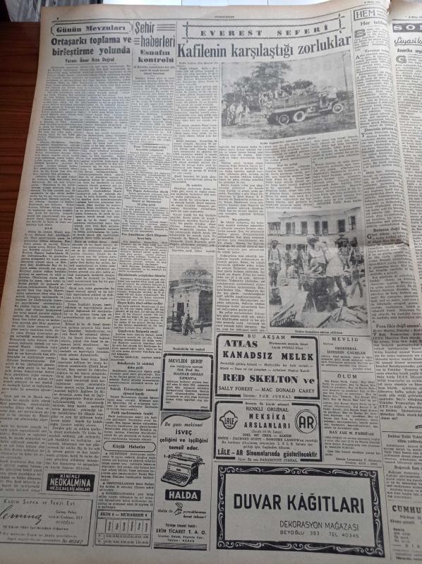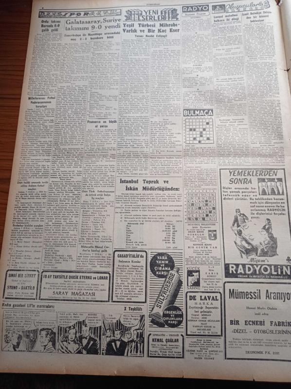 Cumhuriyet Gazetesi - 8 Ekim 1951 - Ankara'da Dün Yapılan Mühim Siyasi Görüşmeler - Amerika Kara Orduları Kurmay Başkanı General Collins - Kore'de Düşmanın Merkez Hattı Yarıldı - İran Başbakanı Doktor Musaddık Dün Sabah Şehrimizden Geçti - Amerika'nın Taktik Atom Silahları - Dün Yeşilköy Hava Alanında Yangın Çıktı - Güreşçilerimiz Mısırda Bütün Rakiplerini Yendiler - Fransız Sanatkar Maurice Chevalier Dün Geldi - Ömer Rıza Doğrul - Everest Seferi - Almanya'nın Eski Büyükelçisi Von Papen Ankara'dan Döndü - Seyhan Eski Milletvekili Ahmed Remzi Yüreğir Vefat Etti - Burhan Felek - Memleket Hikâyesi Bebek Yazan Yaşar Kemal Yazı - Ankara Güzellik Kraliçesi Birsen Demirbaş İstanbul'a Geliyor - Galatasaray Suriye Takımı Jones'i Yendi - Fransa'nın En Büyük At Yarışı - Siemens Batarya Ve Pilleri - Yeni Çıkan Sahibinin Sesi Plakları - Hamiyet Yüceses - Sabite Tur Gülerman - Perihan Altındağ Sözeri - Suzan Yakar Rutkay - General Electric Ampul adlı eser, Kitap > Süreli Yayınlar > Gazeteler > Türkiye > Genel > Günlük kategorisinde İkinci El olarak satıştadır.