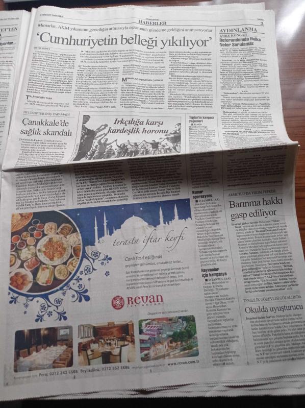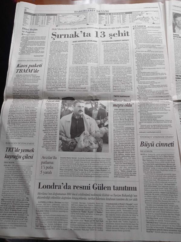 Cumhuriyet Gazetesi - 8 Ekim 2007 - Diyarbakır'daki Kazılarda En Eski Aşk Bulundu - Efes Pilsen'e NBA'de Övgü - Şırnak'ta 13 Şehit - Resmi Fethullah Gülen Tanıtımı - Kaos Paketi TBMM'de - Türkiye'ye Rus Bakışı Ekonomik Müttefik - Napolyon Artık Türk Kirazı - Küresel Tuzak Ilımlı İslam adlı eser Türkçe dilindedir.