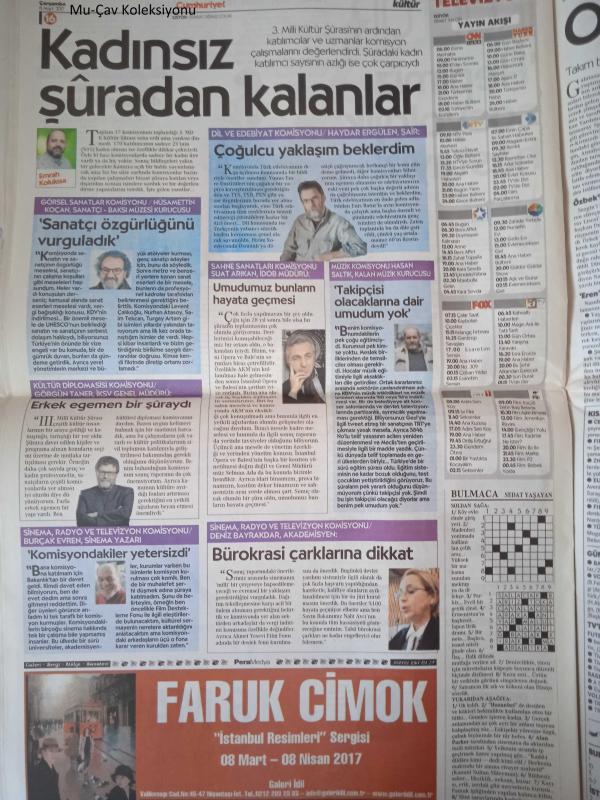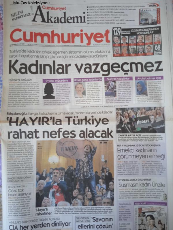 Cumhuriyet Gazetesi,8 Mart 2017,Kemal Kılıçdaroğlu,Arzu Çerkezoğlu,Devlet Bahçeli,Sinan Oğan,Kadri Gürsel,Hakan Kara,Fenerbahçe,Ricardo Quaresma,Ahmet Altan,Sezgin Tanrıkulu adlı eser Türkçe dilindedir.