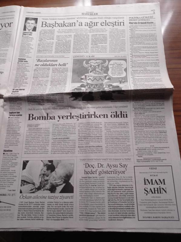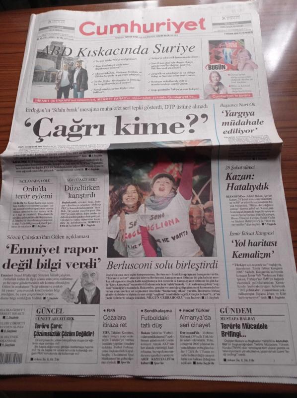 Cumhuriyet Gazetesi - 8 Nisan 2006 - Galatasaray İzmir Marşı'yla - Metin Kurt Fethullahçı Yapılanmaya Yer Yok - Da Vinci Şifresi Mayıs'ta Çözülüyor - ABD Kıskacında Suriye- Recep Tayyip Erdoğan'dan Silahı Bırak Çağrısı - Başsavcı Nuri Ok Yargıya Müdahale Ediliyor - Şevket Kazan 28 Şubat'ta Hatalıydık - Berlusconi Solu Birleştirdi adlı eser Türkçe dilindedir.