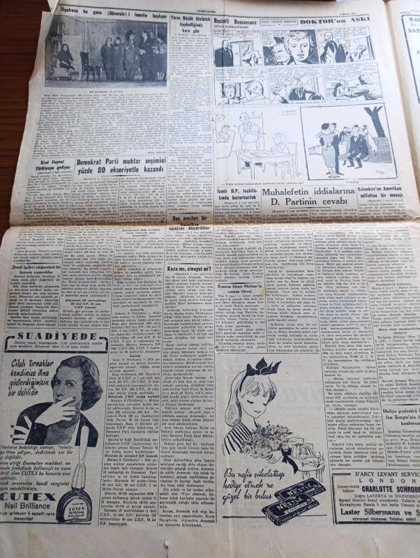 Cumhuriyet Gazetesi - 9 Kasım 1954 - Nasıl Yapsak Yazan Nadir Nadi Başmakale - Ankara'da Yapılacak Askeri Görüşmeler - Amerika Genelkurmay Başkanı Ve Bahriye Nazırı İle Amiral Mountbatten Geliyorlar - Malenkov'un Amerikan Milletine Bir Mesajı - Demokrat Parti Muhtar Seçimini Yüzde 80 Ekseriyetle Kazandı - Rus Avcıları Bir Amerikan Uçağını Düşürdüler - Kanadadan 59 Jet Uçağı Alacağız - 26 Harp Gemisi 100 Bin Dolara Satılıyor - Yarın Büyük Atatürk'ü Kaybettiğimiz Karagün - İstanbul'da 16992 Motorlu Vasıta Var - Şehir Meseleleri Yazan Burhan Felek Köşe Yazısı - Reşid Paşa'nın Heykelinin Dikilmesi İçin Bir Takrir - Artist Silvano Mangano Geliyor - Türkiye Mısır Milli Maçı - 57 Kilo Serbest Güreş Şampiyonu Mustafa Dağıstanlı Askerliğini Bitirdi - Şehir Tiyatrosu Dram Kısmında Beyaz Güvercin - Şen Ses Tiyatrosunda Fındık Kurdu Opereti - Korsanlar Adası Filmi Lale Ve Elhamra Sinemasında - Zoraki Diplomat Yazan Yakup Kadri Karaosmanoğlu Yazı Dizisi - Meşhur Aktör Marlon Brando'nun Sevdiği Kız, Yunus Nadi tarafından kaleme alınmıştır. Cumhuriyet Gazetesi - 9 Kasım 1954 - Nasıl Yapsak Yazan Nadir Nadi Başmakale - Ankara'da Yapılacak Askeri Görüşmeler - Amerika Genelkurmay Başkanı Ve Bahriye Nazırı İle Amiral Mountbatten Geliyorlar - Malenkov'un Amerikan Milletine Bir Mesajı - Demokrat Parti Muhtar Seçimini Yüzde 80 Ekseriyetle Kazandı - Rus Avcıları Bir Amerikan Uçağını Düşürdüler - Kanadadan 59 Jet Uçağı Alacağız - 26 Harp Gemisi 100 Bin Dolara Satılıyor - Yarın Büyük Atatürk'ü Kaybettiğimiz Karagün - İstanbul'da 16992 Motorlu Vasıta Var - Şehir Meseleleri Yazan Burhan Felek Köşe Yazısı - Reşid Paşa'nın Heykelinin Dikilmesi İçin Bir Takrir - Artist Silvano Mangano Geliyor - Türkiye Mısır Milli Maçı - 57 Kilo Serbest Güreş Şampiyonu Mustafa Dağıstanlı Askerliğini Bitirdi - Şehir Tiyatrosu Dram Kısmında Beyaz Güvercin - Şen Ses Tiyatrosunda Fındık Kurdu Opereti - Korsanlar Adası Filmi Lale Ve Elhamra Sinemasında - Zoraki Diplomat Yazan Yakup Kadri Karaosmanoğlu Yazı Dizisi - Meşhur Aktör Marlon Brando'nun Sevdiği Kız adlı eser Türkçe dilindedir.