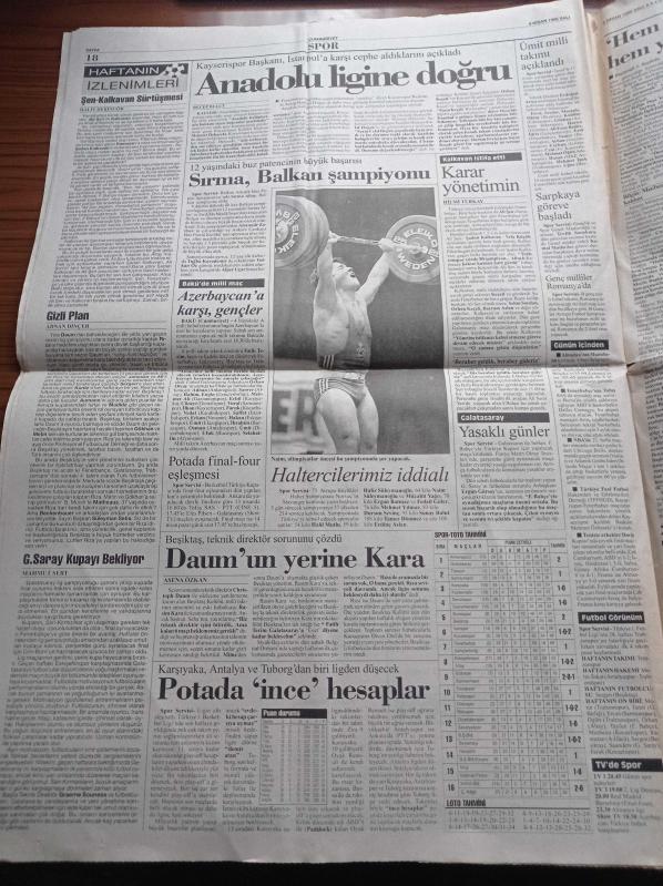 Cumhuriyet Gazetesi - 9 Nisan 1996 - Balkan Artistik Buz Pateni Şampiyonası'nda Sırma Altay - Naim Süleymanoğlu Olimpiyatlar İçin İddialı - Mehmet Ağar Hukuku Çiğniyor - Refah Partisi'nden Harem Selamlık Plaj Önerisi - Bir Sinema Ustası Michelangelo Antonioni Yaşam Boyu Onur Ödülü Aldı - Erzincan Valisi Recep Yazıcıoğlu Atamada Ölçüyü Kaçırdılar - Rıdvan Yenişen İstanbul Vakisi- İsrail'le Yapılan Askeri Anlaşma Sebebiyle Araplardan Türkiye'ye Sert Tepki - 27 Asker Şehit adlı eser, Kitap > Süreli Yayınlar > Gazeteler kategorisinde İkinci El olarak satıştadır.