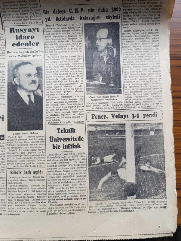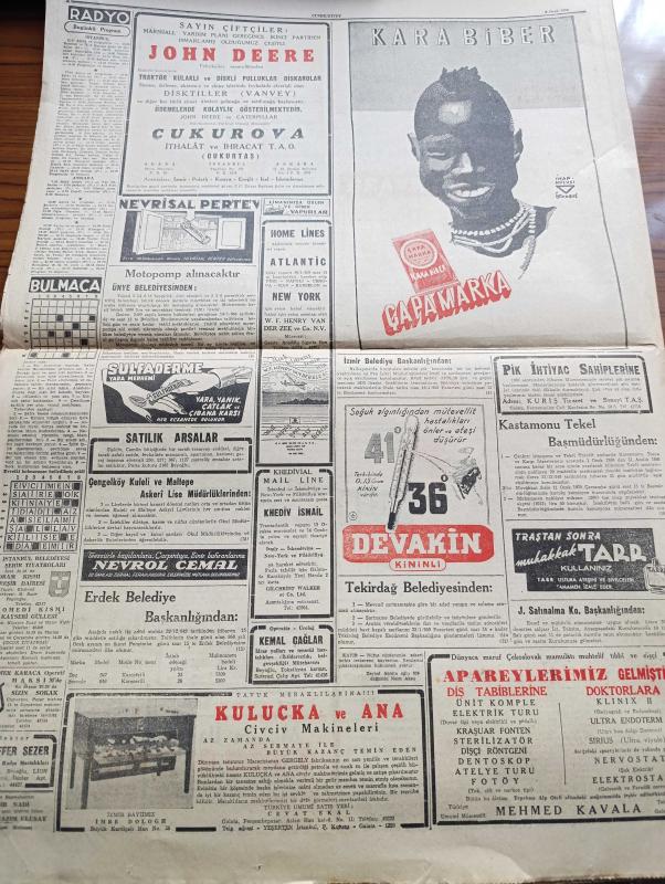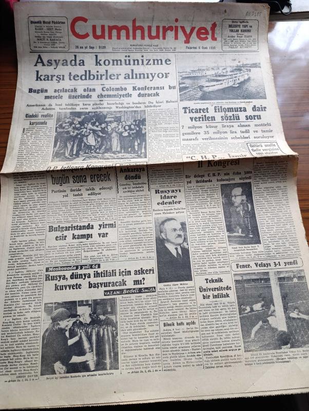 Cumhuriyet Gazetesi - 9 Ocak 1950 - Çin'deki Realite Karşısında Yazan Abidin Daver Köşe Yazısı - Asya Komünizme Karşı Tedbirler Alınıyor - Colombo Konferansı - Ticaret Filomuza Dair Gerilen Sözlü Soru - Moskova'da 3 Yıl Yazan Bedell Smith Yazı Dizisi - Rusya'yı İdare Edenler Bunların Başında Stalin'den Sonra Malenkov Geliyor - Fenerbahçe Vefa'yı Yendi Fotoğraf - Verem Savaşımızda Propagandanın Rolü Yazan Doktor Kemal Saraçoğlu - Einstein'ın Teorisi Anlaşılamadı - Sapa Yol Yazan Concordia Merrel - Sinema Artisti Tyrone Power İle Eşini Soydular - Fenerbahçe B Takımı Gol Rekoru Kırdı Fenerbahçe Şişliyi 18 0 Yendi - Galatasaray Beyoğlunu 4 2 Yendi - Ankara'da Bir Komiser Geldi Ve Küçük Tiyatronun İkinci Yıldönümü Yazan Lütfi Ay - Ölüme Doğru Yazan Agatha Christie Yazı Dizisi - 1949 un En Mühim Keşif Ve İcatları - Yeni Bulunan Radyo Teleskop Fotoğraf - 1949 1950 Yunus Nadi Mükafatı Bir Yurt Yazısı Bilecik - Çapamarka Çorbalık - Bugünkü Radyo Programı - Bulmaca - Muammer Karaca Opereti adlı eser, Kitap > Süreli Yayınlar > Gazeteler > Türkiye > Genel > Günlük kategorisinde İkinci El olarak satıştadır.