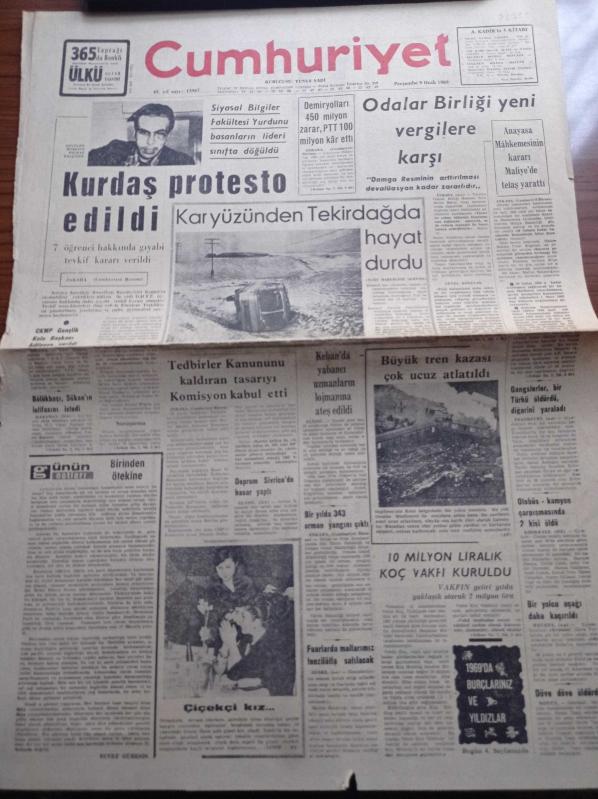 Cumhuriyet Gazetesi - 9 Ocak 1969 - Kurucusu Yunus Nadi - İlhan Selçuk - Bay Robert Komer Kimdir - ODTÜ'de Amerikan Büyükelçisi Komer'in Arabasını Yakan Öğrenciler Hakkında Gıyabi Tevkif Kararı - Rektör Kemal Kurdaş Protesto Edildi - Siyasal Bilgiler Fakültesi Yurdunu Basanların Lideri Yılmaz Yalçıner Dövüldü - Osman Bölükbaşı adlı eser Türkçe dilindedir.