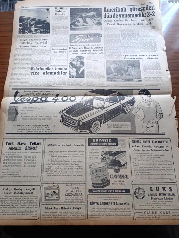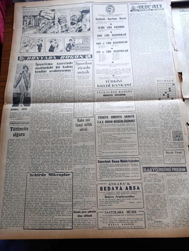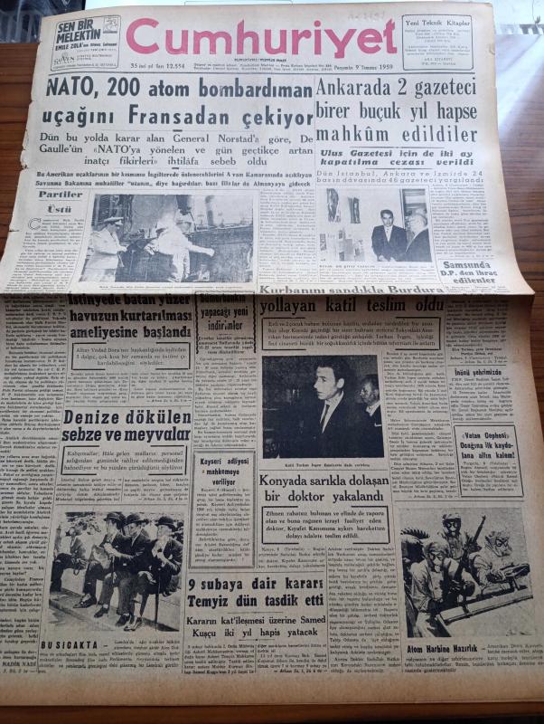 Cumhuriyet Gazetesi - 9 Temmuz 1959 - Uluç Ali Yazan Halikarnas Balıkçısı Yazı Dizisi - Nadir Nadi Köşe Yazısı - NATO 200 Atom Bombardıman Uçağını Fransa'dan Çekiyor - Ankara'da İki Gazeteci Beyhan Cenkçi Ve Oktay Verel Birer Buçuk Yıl Hapse Mahkum Edildiler - Sümerbank'ın Yapacağı Yeni İndirimler - Vatan Cephesine İlk Kaydolana Altın Kalem - İstinyede Batan Yüzer Havuzun Kurtarılması Ameliyesine Başlandı - Denize Dökülen Sebze Ve Meyveler - Konya'da Sarıkla Dolaşan Doktor Sadullah Nutku Yakalandı - Kurtlar Ulurken Yazan Alix Andre Yazı Dizisi - Ay'ın İlk Seyyahları Çeviren Tevfik Sadullah Yazı Dizisi - Rus Başbakanı Hrutçef Amerikan Başkanı Eisenhower'i Rusya'yı Ziyarete Davet Etti - Küba Başkanı Fidel Castro'nun Sakalı - Kadın Sesi Füzeyi İnfilak Ettirdi - Dünya Ağır Siklet Boks Şampiyonu Johansson - Almanya'da Dörtlü Turnuvaya Katılan Bakırköy Voleybol Takımı İkinci Oldu - Rocky Marciano Ringe Dönüyor - güreşçi Osman Kambur İle İsmet Atlı Galip - Galatasaraylı Ünal Karagümrük'te, Yunus Nadi tarafından kaleme alınmıştır. Cumhuriyet Gazetesi - 9 Temmuz 1959 - Uluç Ali Yazan Halikarnas Balıkçısı Yazı Dizisi - Nadir Nadi Köşe Yazısı - NATO 200 Atom Bombardıman Uçağını Fransa'dan Çekiyor - Ankara'da İki Gazeteci Beyhan Cenkçi Ve Oktay Verel Birer Buçuk Yıl Hapse Mahkum Edildiler - Sümerbank'ın Yapacağı Yeni İndirimler - Vatan Cephesine İlk Kaydolana Altın Kalem - İstinyede Batan Yüzer Havuzun Kurtarılması Ameliyesine Başlandı - Denize Dökülen Sebze Ve Meyveler - Konya'da Sarıkla Dolaşan Doktor Sadullah Nutku Yakalandı - Kurtlar Ulurken Yazan Alix Andre Yazı Dizisi - Ay'ın İlk Seyyahları Çeviren Tevfik Sadullah Yazı Dizisi - Rus Başbakanı Hrutçef Amerikan Başkanı Eisenhower'i Rusya'yı Ziyarete Davet Etti - Küba Başkanı Fidel Castro'nun Sakalı - Kadın Sesi Füzeyi İnfilak Ettirdi - Dünya Ağır Siklet Boks Şampiyonu Johansson - Almanya'da Dörtlü Turnuvaya Katılan Bakırköy Voleybol Takımı İkinci Oldu - Rocky Marciano Ringe Dönüyor - güreşçi Osman Kambur İle İsmet Atlı Galip - Galatasaraylı Ünal Karagümrük'te adlı eser Türkçe dilindedir.