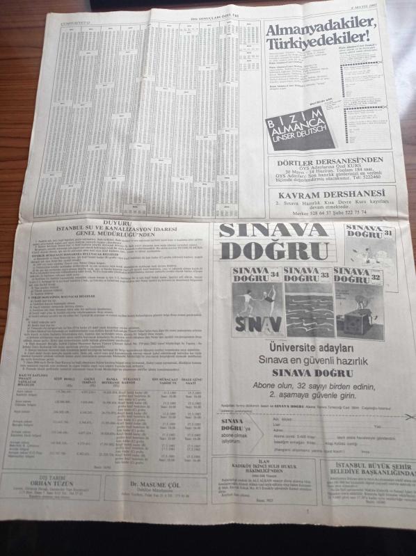 Cumhuriyet Gazetesi ÖSS Sonuçları Özel Gazetesi - 8 Mayıs 1985 - Sınava Doğru - Bizim Almanca - Dörtler Dersanesi - Kavram Dershanesi - Bizim Almanca adlı eser Türkçe dilindedir.