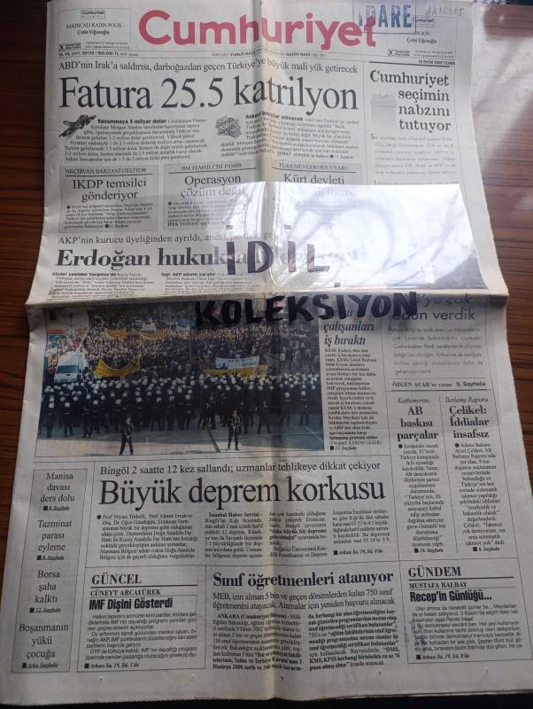 Cumhuriyet Gazetesi - Turkish Newspaper - 18 Ekim 2002 - ABD'nin Irak'a saldırısı darboğazdan geçen Türkiye'ye büyük mali yük getirecek - fatura 25.5 kattrilyon - Recep Tayyip Erdoğan hukukta hileyi seçti - KESK üyeleri tüm tüm yurtta iş bırakma eylemi yaptı Fotoğrafı - adalet bakanı Aysel Çelikel ilerleme raporunda iddialar insafsız dedi - Bingöl 2 saatte 12 kez sallandı - türkmenlerden uyarı Kürt devleti kurulmak üzere - Neçirvan Barzani geliyor - Recep Tayyip Erdoğan'ın pano ihalesi incelemede - ÖDP'li Sinan Kayışı öldüren sanıklara 30 yıl istendi - DİSK oylar sol partilere - DEHAP'a soruşturma yağmuru - Mesut Yılmaz'dan 28 Şubat uyarısı - TKP'nin Avrupa yılları yazan Metin Gür Yazı Dizisi - Gaziantep 99 seçimi - Manisalı gençler davası derslerle dolu - Flash TV Ve Ulusal TV karardı - son Berlin festivali'nde Altın ayı kazanan kanlı Pazar bugün gösterimde - ulusal takım teknik direktörü Şenol Güneş İngiltere final maçımız - Fenerbahçe camiası lokalini geri istiyor - Doğu perinçek, Yunus Nadi tarafından kaleme alınmıştır. Cumhuriyet Gazetesi - Turkish Newspaper - 18 Ekim 2002 - ABD'nin Irak'a saldırısı darboğazdan geçen Türkiye'ye büyük mali yük getirecek - fatura 25.5 kattrilyon - Recep Tayyip Erdoğan hukukta hileyi seçti - KESK üyeleri tüm tüm yurtta iş bırakma eylemi yaptı Fotoğrafı - adalet bakanı Aysel Çelikel ilerleme raporunda iddialar insafsız dedi - Bingöl 2 saatte 12 kez sallandı - türkmenlerden uyarı Kürt devleti kurulmak üzere - Neçirvan Barzani geliyor - Recep Tayyip Erdoğan'ın pano ihalesi incelemede - ÖDP'li Sinan Kayışı öldüren sanıklara 30 yıl istendi - DİSK oylar sol partilere - DEHAP'a soruşturma yağmuru - Mesut Yılmaz'dan 28 Şubat uyarısı - TKP'nin Avrupa yılları yazan Metin Gür Yazı Dizisi - Gaziantep 99 seçimi - Manisalı gençler davası derslerle dolu - Flash TV Ve Ulusal TV karardı - son Berlin festivali'nde Altın ayı kazanan kanlı Pazar bugün gösterimde - ulusal takım teknik direktörü Şenol Güneş İngiltere final maçımız - Fenerbahçe camiası lokalini geri istiyor - Doğu perinçek adlı eser Türkçe dilindedir.