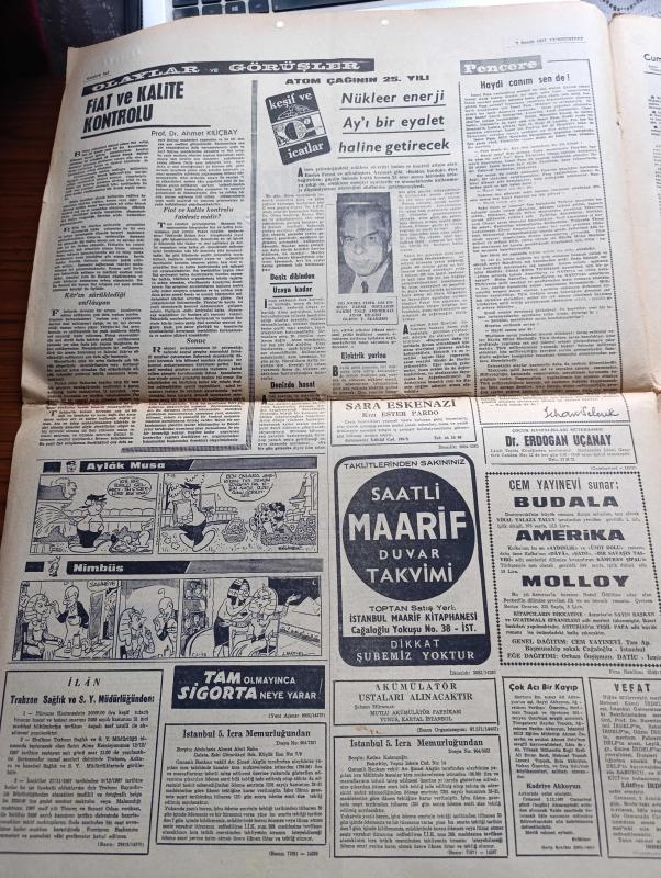 Cumhuriyet Gazetesi - Turkish Newspaper - 2 Aralık 1967 - Kıbrıs semalarında 2 jetimize İngilizler müdahale etti - liberasyon listelerinden ancak zaruri maddeler ithal edilebilecek - ordu mensupları kıta tazminatlarını dün alamadılar - 140 kıpti Ramazan'da davul çalmak için izin istediler - Grivas Kıbrıs'a yakında döneceğim - İsmet İnönü yabancı gazeteciler ve işçilerle görüştü bundan sonraki hadiseleri bekleyeceğiz dedi - Kıbrıs'ta Barış rüzgarları fotoğraf - Alparslan Türkeş'in Süleyman Demirel için gensoru önergesi okunurken Adalet Partisi tepki gösterdi - aylak Musa karikatür - haydi canım sen de yazan İlhan Selçuk - ağaç bayramında 15.000 çam fidanı dikilecek - dansözler kraliçesi Gülruh'u öldüren Muzaffer Hanta 20 yıla mahkum oldu- Yarın Dolmabahçe stadında Fenerbahçe ile Göztepe liderlik maçı yapacak - basketbol liginde 3. Hafta Galatasaray Beşiktaş karşılaşıyor - bugün Hacettepe ile karşılaşacak olan Beşiktaş maça neşe içinde kampta hazırlanmıştır fotoğraf - voleybol, Yunus Nadi tarafından kaleme alınmıştır. Cumhuriyet Gazetesi - Turkish Newspaper - 2 Aralık 1967 - Kıbrıs semalarında 2 jetimize İngilizler müdahale etti - liberasyon listelerinden ancak zaruri maddeler ithal edilebilecek - ordu mensupları kıta tazminatlarını dün alamadılar - 140 kıpti Ramazan'da davul çalmak için izin istediler - Grivas Kıbrıs'a yakında döneceğim - İsmet İnönü yabancı gazeteciler ve işçilerle görüştü bundan sonraki hadiseleri bekleyeceğiz dedi - Kıbrıs'ta Barış rüzgarları fotoğraf - Alparslan Türkeş'in Süleyman Demirel için gensoru önergesi okunurken Adalet Partisi tepki gösterdi - aylak Musa karikatür - haydi canım sen de yazan İlhan Selçuk - ağaç bayramında 15.000 çam fidanı dikilecek - dansözler kraliçesi Gülruh'u öldüren Muzaffer Hanta 20 yıla mahkum oldu- Yarın Dolmabahçe stadında Fenerbahçe ile Göztepe liderlik maçı yapacak - basketbol liginde 3. Hafta Galatasaray Beşiktaş karşılaşıyor - bugün Hacettepe ile karşılaşacak olan Beşiktaş maça neşe içinde kampta hazırlanmıştır fotoğraf - voleybol adlı eser Türkçe dilindedir.