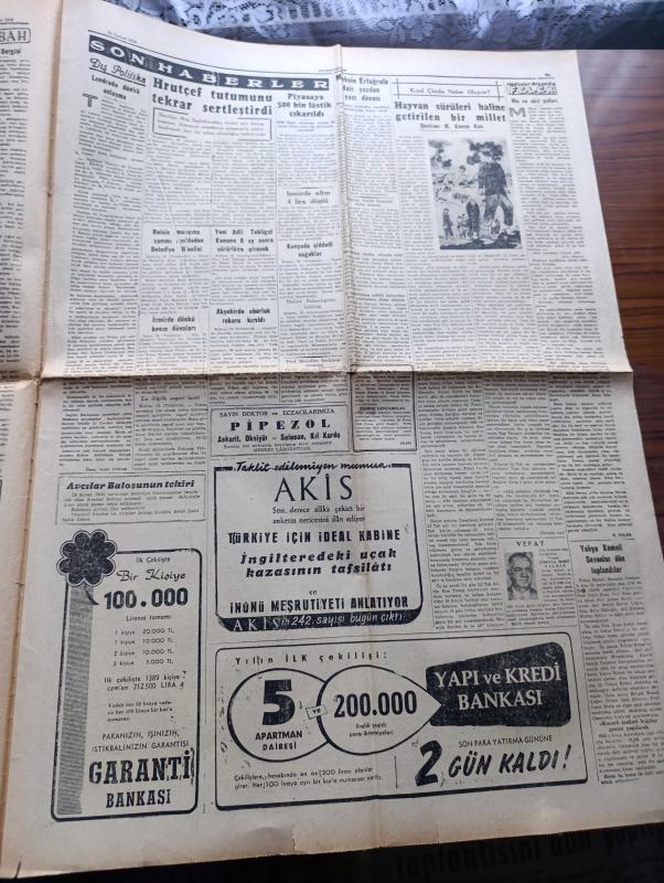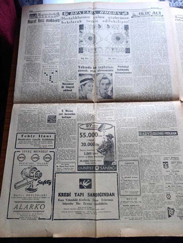 Cumhuriyet Gazetesi - Turkish Newspaper - 20 Şubat 1959 - Adnan Menderes millete radyo ile hitap etti - Başbakan Adnan Menderes Dün yatağından kalktı ve odasında dolaştı - uçak kazasından sonra Adnan Menderes'e ilk yardımı yapan Newdigate'li çiftçi Anthony Bailey ve karısı Margaret fotoğraf - Dr. Fazıl Küçük anlaşmanın imzalandığı Lancaster House'dan çıkarken imzayı müteakip MacMillan Fatin Rüştü Zorlu ve Karamanlis el sıkışırlarken fotoğraf - Londra'da vuku bulan uçak kazasında vefat edenlerin cenazeleri yurda getiriliyor - Başbakan Adnan Menderes uçak kazasından sağ kurtulmuştu - Türkiye'de ilk defa bir ağır ceza mahkemesini 3 kadın hakim idare etmiştir fotoğraf - hükümet meydanı yazan İlhan Tarus Yazı Dizisi - İzmir'de dünkü basın davaları - his ve akıl yolları yazan Burhan Felek - Muhsin Ertuğrul'a dair yazılan yazı davası - Yahya Kemal'i sevenler dün toplandılar - Uluç Ali yazan halikarnas balıkçısı Yazı Dizisi - İstanbul belediyesi şehir tiyatrosu dram kısmında dört albayın aşkı adlı eser, Kitap > Süreli Yayınlar > Gazeteler > Türkiye > Genel > Günlük kategorisinde İkinci El olarak satıştadır.