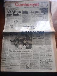 Cumhuriyet Gazetesi Sayfa Boyutu : 42*58 cm Sayfa Sayısı: 20 Yıpranma, sararmalar, kupon kesiği ve yırtılmalar zamana bağlı olarak görülebilir Not: Tam takım gazetedir