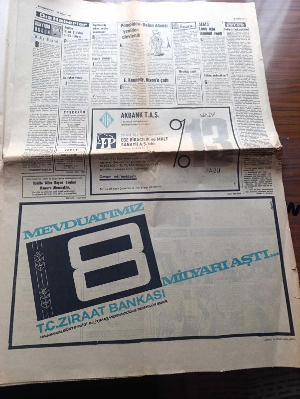 Cumhuriyet Gazetesi - Turkish Newspaper - 22 Mayıs 1969 - oyunlu politika yazan Nadir Nadi Başmakale - Süleyman Demirel AP senato grubunda ağırlığını koydu - Ve Af seçimden sonraya kaldı - Kamil Ocak senatoya giderken mecliste öldü - Apollo 10 ay yörüngesinde - Bülent Ecevit de hesapları ortaya döktü - Ferruh Adalı yargıtay başkanı oldu - İsmet İnönü yorum yok dedi - 27 mayıs'ın provası yapıldı - haydi canım sen de yazan İlhan Selçuk - Pompidou Alain Delon davası - padişah buyruğundan halk iradesine yazan Şükran Soner - Yasin Kutluğ çoban kıyafeti ile ilk meclise gelişi Fotoğrafı - Cumhuriyet devrinde gericilik hareketlerinden birkaç örnek yazan Kemal Zeki Gencosman Yazı Dizisi - Yayın Hayatı - Galatasaray kupa kupa diyor - Pele satılık değildir - Vefalı Zekiye 5 kulüp talip - İonescu Fenerbahçe hakkında konuştu - Avrupa basketbol kupası seçmelerinde Milli takımımız Macaristan'a 69 58 mağlup oldu - Spor bakanlığı kuruması fikri olumlu karşılandı - at yarışları - kupa galipleri kupası adlı eser, Kitap > Süreli Yayınlar > Gazeteler > Türkiye > Genel > Günlük kategorisinde İkinci El olarak satıştadır.