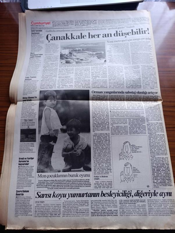 Cumhuriyet Gazetesi Sayfa Boyutu : 42*58 cm Sayfa Sayısı: 18 Yıpranma, sararmalar, kupon kesiği ve yırtılmalar zamana bağlı olarak görülebilir Not: Tam takım gazetedir