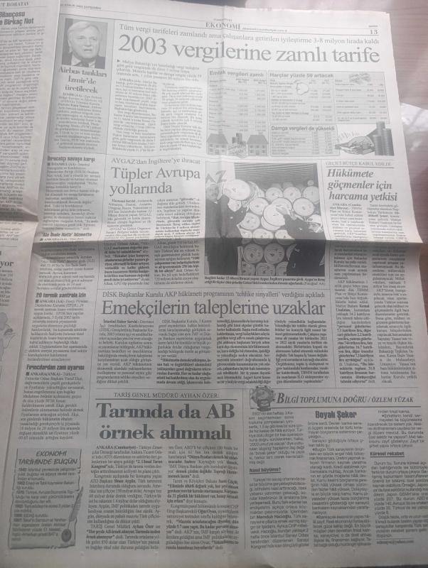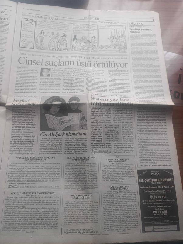 Cumhuriyet Gazetesi - Turkish Newspaper - 25 Aralık 2002 - Irak zirvesinde Amerika'nın isteklerine karşın Türkiye'nin önerileri saptandı - Cumhurbaşkanı Ahmet Necdet Sezer'den vekillere yasalarda nesnel olun - Barzani'den Ankara'ya tavır - AKP türban ve Irak kıskacında - Bülent Ecevit uyardı can kaybı çok olur - emeklinin çilesi bitmiyor - iktidardan Kemal Gürüz'e gözdağı - Hablemitoğlu'na sıkılan kurşun yazan İlhan Selçuk - bergamalılar yargı karşısında - Recep Tayyip Erdoğan paketi yeniden - Başbakan Abdullah Gül Necip Hablemitoğlu suikasti ile yakından ilgileniyoruz - Abdullah Öcalan dosyası yerel mahkemede - Deniz Baykal AKP'nin boş söylemle iktidar olduğunu söyledi - Filistin'de işgal altında Noel kutlaması - AYGAZ'dan İngiltere'ye ihracat - Türkiye yazarlar Sendikası başkanı Cengiz Bektaş'a Romanya'dan ödül - Fazıl Say Ve Cihat Aşkın Fotoğrafı - Bir yudum hayatın bu haftaki bölümünde Yıldız Kenter - Galatasaray sallandı ama yıkılmadı - Fenerbahçe'de Revivo kıymete bindi, Yunus Nadi tarafından kaleme alınmıştır. Cumhuriyet Gazetesi - Turkish Newspaper - 25 Aralık 2002 - Irak zirvesinde Amerika'nın isteklerine karşın Türkiye'nin önerileri saptandı - Cumhurbaşkanı Ahmet Necdet Sezer'den vekillere yasalarda nesnel olun - Barzani'den Ankara'ya tavır - AKP türban ve Irak kıskacında - Bülent Ecevit uyardı can kaybı çok olur - emeklinin çilesi bitmiyor - iktidardan Kemal Gürüz'e gözdağı - Hablemitoğlu'na sıkılan kurşun yazan İlhan Selçuk - bergamalılar yargı karşısında - Recep Tayyip Erdoğan paketi yeniden - Başbakan Abdullah Gül Necip Hablemitoğlu suikasti ile yakından ilgileniyoruz - Abdullah Öcalan dosyası yerel mahkemede - Deniz Baykal AKP'nin boş söylemle iktidar olduğunu söyledi - Filistin'de işgal altında Noel kutlaması - AYGAZ'dan İngiltere'ye ihracat - Türkiye yazarlar Sendikası başkanı Cengiz Bektaş'a Romanya'dan ödül - Fazıl Say Ve Cihat Aşkın Fotoğrafı - Bir yudum hayatın bu haftaki bölümünde Yıldız Kenter - Galatasaray sallandı ama yıkılmadı - Fenerbahçe'de Revivo kıymete bindi adlı eser Türkçe dilindedir.