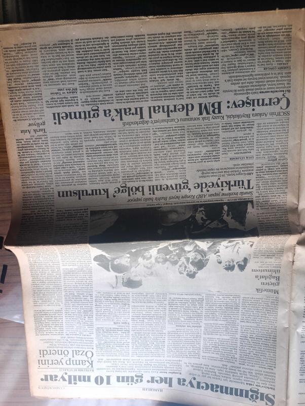 Cumhuriyet Gazetesi - Turkish Newspaper - 25 Nisan 1991 - Kürdistan yurtseverler Birliği lideri Talabani sığınmacılara evlerine dönmeleri için çağrı yaptı - Kürtler Saddam'la anlaştı - sığınmacılar için kamp yerini Turgut Özal önerdi - Boris Yeltsin Gorbaçov geriye dönemez - SHP DYP farklı Ses - Turgut Özal'dan tehdit THY Kapanır - Yalabık yazan Uğur Mumcu - Sezarın hakkı yazan İlhan Selçuk - 8. Ankara sanat festivali - Baba 3 filminin setinden Al Pacino Fotoğrafı - Aşiyan müzesine 250 milyonluk makyaj - Orhan Pamuk fotoğraf - Kayahan konseri Hilton'da - Ahmet Arif Rahmi Saltuk İstanbul konseri - Koç holdinge bağlı işyerleri bombalandı - 80 yıllık Çınar Rıfat Ilgaz yazan Necati Güngör Yazı Dizisi - Galatasaray'ın hedefi Avrupa - Mustafa Denizli - Yugoslav teknik direktör Tomislav İviç Fenerbahçe'ye gelebilirim dedi - Eczacıbaşı bayan voleybol takımı antrenörü Cengiz Göllü fotoğraf - Ankaragücü kalecisi Zalad Beşiktaş çok disiplinli dedi Fotoğrafı - Trabzonspor arayış içinde adlı eser, Kitap > Süreli Yayınlar > Gazeteler > Türkiye > Genel > Günlük kategorisinde İkinci El olarak satıştadır.