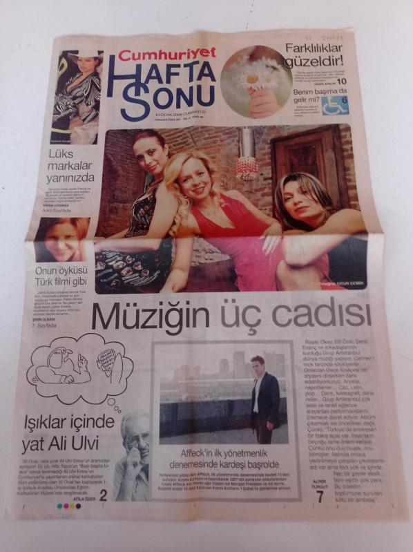 Cumhuriyet Haftasonu Gazetesi - 19 Ocak 2008 - Sayı 86 - Müziğin Üç Cadısı - Başay Okay Fotoğrafı - Elif Özel Fotoğrafı - Şeniz Erdinç Fotoğrafı- Caz - Latin Dansı- Işıklar İçinde Yat Ali Ulvi - Zeliha Sunal - Ben Affleck'in İlk Yönetmenlik Denemesinde Kardeşi Başrolde adlı eser Türkçe dilindedir.