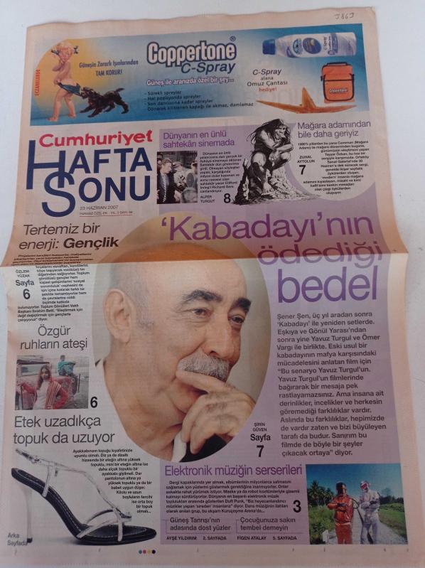 Cumhuriyet Haftasonu Gazetesi - 23 Haziran 2007 - Sayı 56 - Şener Şen Fotoğrafı - Kabadayı'nın Ödediği Bedel - Mağara Adamından Bile Daha Geriyiz - Tertemiz Bir Enerji Gençlik adlı eser Türkçe dilindedir.