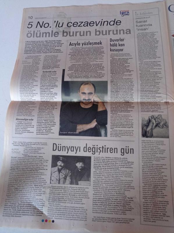 Cumhuriyet Haftasonu Gazetesi - 7 Kasım 2009 - Sayı 180 -Tolgahan Sayışman Fotoğrafı - Çayan Demirel Duvarlar Hala Kan Kusuyor - Bergamalı Galenos Allianoi'ye Çağırıyor - Selanik Festivali 50 Yaşında adlı eser Türkçe dilindedir.
