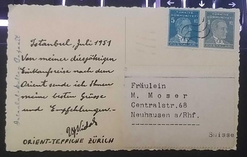 Cumhuriyet İstanbul Fotokart Ata pulları ile İsviçre'ye gönderilmiş,Çok Nadir.