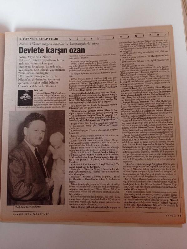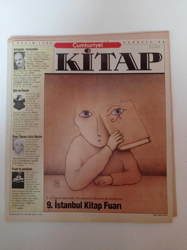 Cumhuriyet Kitap - 2 Kasım 1990 - Sayı 37 - 9. İstanbul Kitap Fuarı - Devlete Karşı Bir Ozan Nazım Hikmet - Onur Yazarı Aziz Nesin - Melih Cevdet Anday - Bulat Okucava - Sten Nadolny- Abdüllatif Laabi adlı eser Türkçe dilindedir.