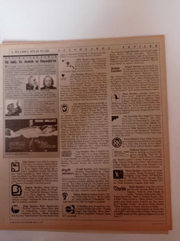 Cumhuriyet Kitap - 2 Kasım 1990 - Sayı 37 - 9. İstanbul Kitap Fuarı - Devlete Karşı Bir Ozan Nazım Hikmet - Onur Yazarı Aziz Nesin - Melih Cevdet Anday - Bulat Okucava - Sten Nadolny- Abdüllatif Laabi adlı eser, Kitap > Süreli Yayınlar > Gazeteler kategorisinde İkinci El olarak satıştadır.