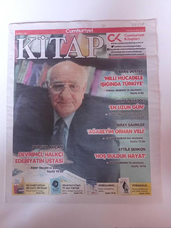 Cumhuriyet Kitap - 22 Nisan 2021 - Sayı 1627- Dursun Akçam Fotoğrafı - Devrimci Halkçı Edebiyatın Ustası - Barış Doster - Milli Mücadele Işığında Türkiye - Kemal Anadol - Ağabeyim Orhan Veli - Veli Emektar - Seray Şahinler adlı eser Türkçe dilindedir.