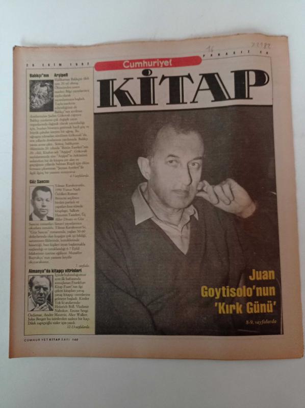 Cumhuriyet Kitap - 29 Ekim 1992 - Sayı 140 - Juan Goytisolo Fotoğrafı - . Balıkçının Arşipeli- Halikarnas Balıkçısı - Salman Rushdie- Şeytan Aletleri - Güz Sancısı - Yılmaz Karakoyunlu adlı eser Türkçe dilindedir.