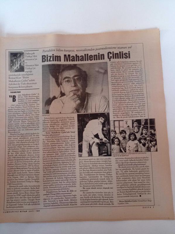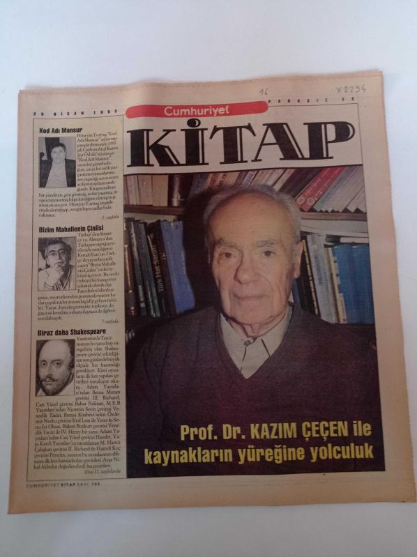 Cumhuriyet Kitap -29 Nisan 1993 - Sayı 166 - Kazım Çeçen Fotoğrafı - Profesör Doktor Kazım Çeçen İle Kaynakların Yüreğine Yolculuk - Kod Adı Mansur - Hüseyin Yurttaş - Bizim Mahallenin Çinlisi - Biraz Daha Shakespeare adlı eser Türkçe dilindedir.