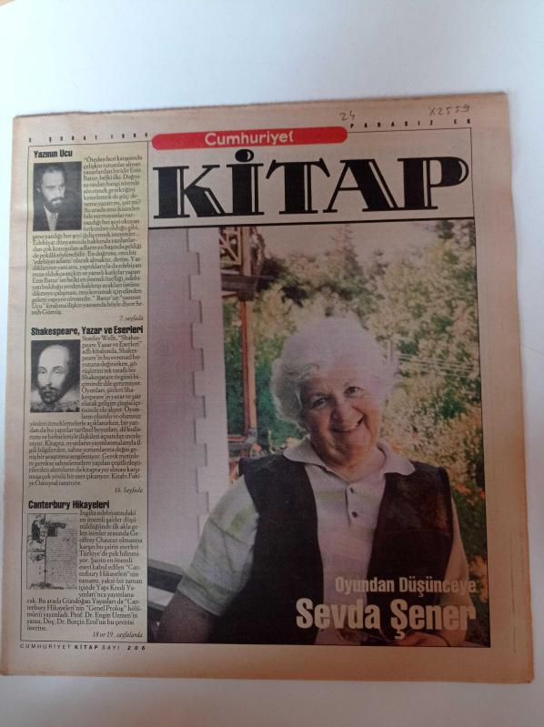 Cumhuriyet Kitap - 3 Şubat 1994 - Sayı 206 - Sevda Şener Fotoğrafı - Oyundan Düşünceye - Yazının Ucu - Shakespeare - Stanley Wells- Canterbury Hikayeleri - İngiliz Edebiyatı- Genel Prolog- Yazının Ucu - Enis Batur adlı eser Türkçe dilindedir.