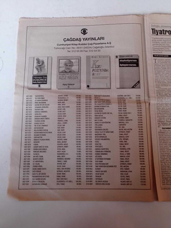 Sayfa Boyutu: 28*38cm Sayfa Sayısı:20 Cumhuriyet Kitap Gazetesi Yıpranma, sararmalar, kupon kesiği ve yırtılmalar zamana bağlı olarak görülebilir
