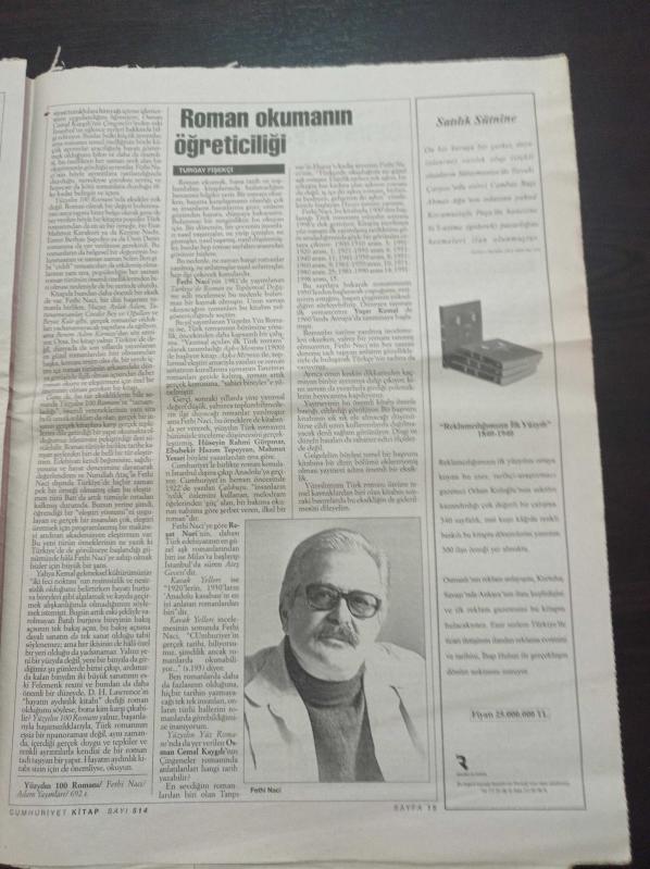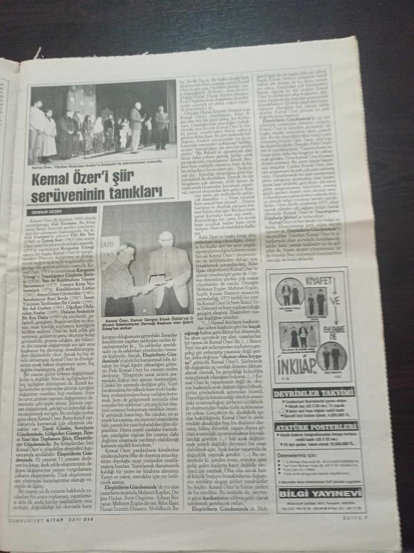 Cumhuriyet Kitap Gazetesi - 23 Aralık 1999 - Sayı 514 -Kapsamlı Bir Sanat Yolcusu Kemal Özer Fotoğrafı - Reşat Nuri Güntekin - Adnan Binyazar - 100 Yılın 100 Romanı - Ali Akay Sanatın Sosyolojik Gözü'nü İnceledi adlı eser Türkçe dilindedir.