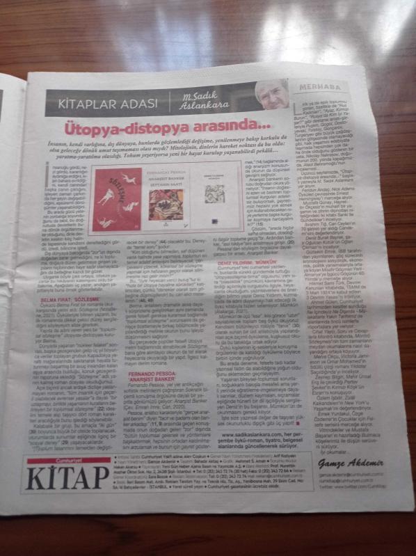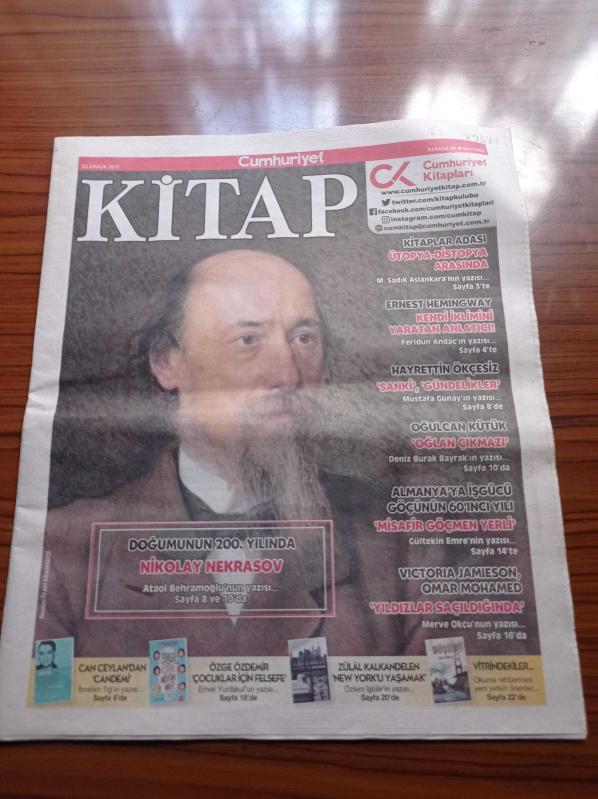 Cumhuriyet Kitap Gazetesi - 23 Aralık 2021 - Sayı 1662 - Doğumunun 200. Yılında Nikolay Nekrasov - Kitaplar Adası Ütopya Distopya Arasında - Ernest Hemingway Kendi İklimini Yaratan Anlatıcı - Hayrettin Ökçesiz - Almanya'ya İşgücü Göçünün 60. yılı - Zülal Kalkandelen New York'u Yaşamak adlı eser Türkçe dilindedir.