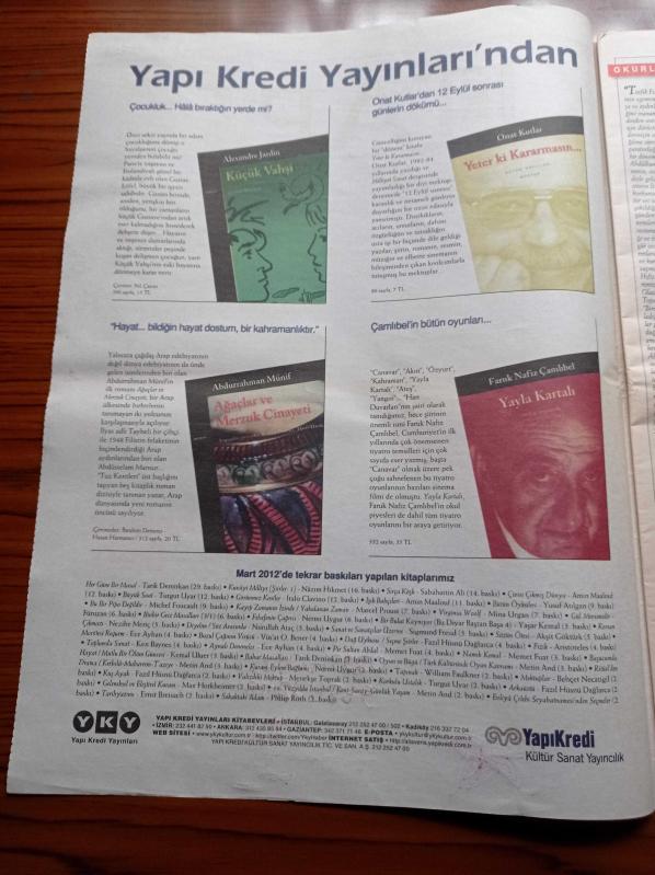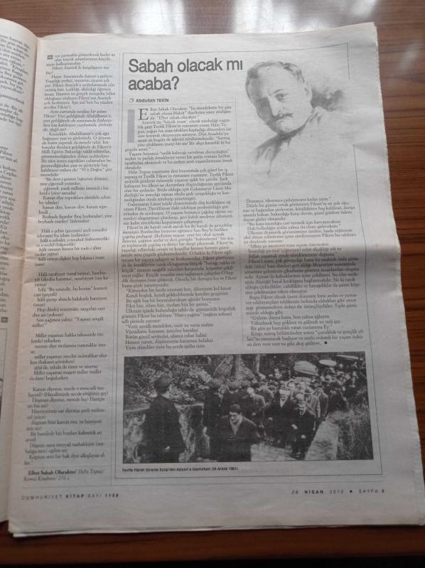 Cumhuriyet Kitap Gazetesi - 26 Nisan 2012 - Sayı 1158- Hulki Aktunç Fotoğrafı- Hıfzı Topuz - Elbet Sabah Olacaktır - Ahmet Ümit Fatih Sultan Mehmet'in Ruhunu Anlamaya Çalıştım- Bir Yaratıcı Sinemacı Erden Kıral- Sultanı Öldürmek - Öfke Yangınının Ettiği - Philip Roth adlı eser Türkçe dilindedir.