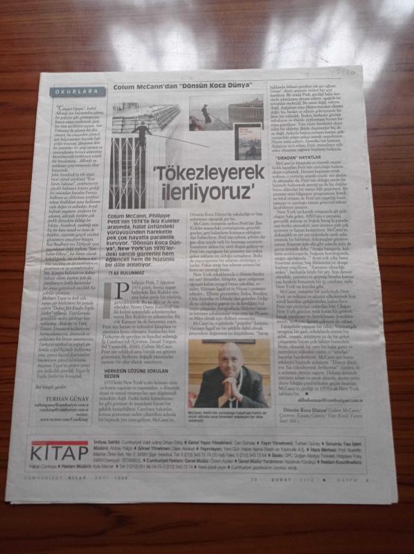 Cumhuriyet Kitap Gazetesi - 26 Şubat 2015 - Sayı 1306 - Colum McCAnn'dan Dönsün Koca Dünya - John Steinbeck'ten Kısa Süren Saltanat - Şiir Atlası - Cevat Çapan - Yeryüzü Kitaplığı - Celal Üster- Server Tanilli - Seküler Yaşam Ve Şifacılık - Türkiye'de Kapitalist Yöneticiler Sınıfı - Feklavye adlı eser Türkçe dilindedir.
