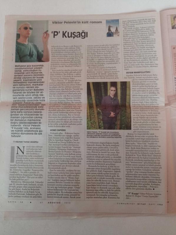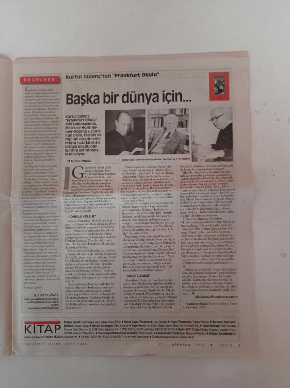 Cumhuriyet Kitap Gazetesi - 27 Ağustos 2015- Nilüfer Kuyaş Fotoğrafı - Karasevda Kitabı - Faik Bulut İslamcı Örgütler Kitabı - Max Horkheimer - Herbest Marcuse - Adorno - Ernest Hemingway - Frankfurt Okulu adlı eser Türkçe dilindedir.